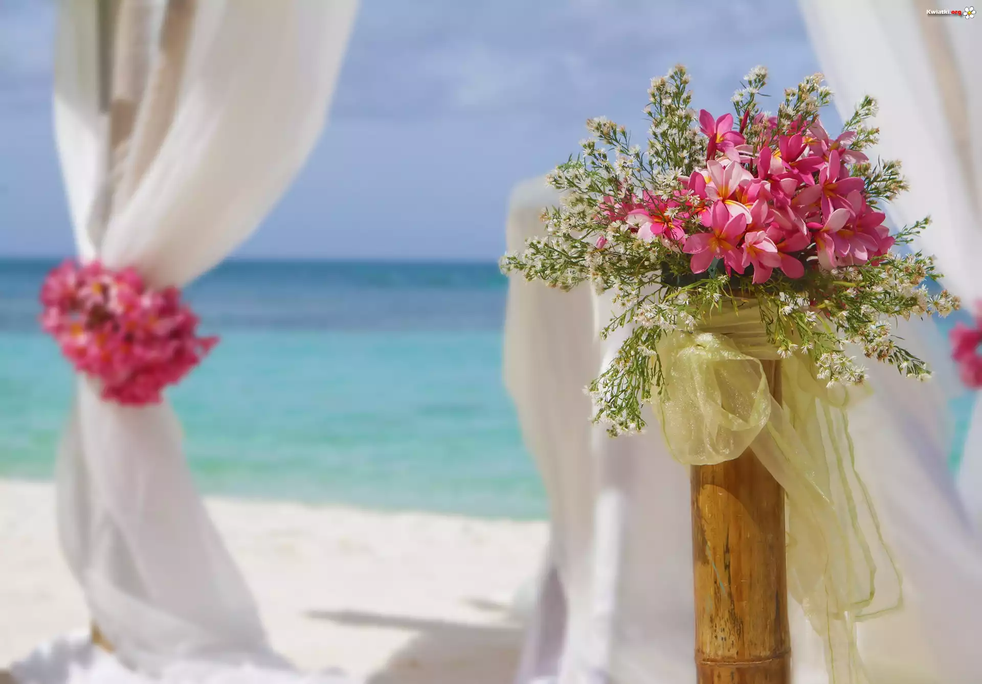 Kwiat Bukiet, Różowych, Kwiatów, Plaża, Morze, Ślub