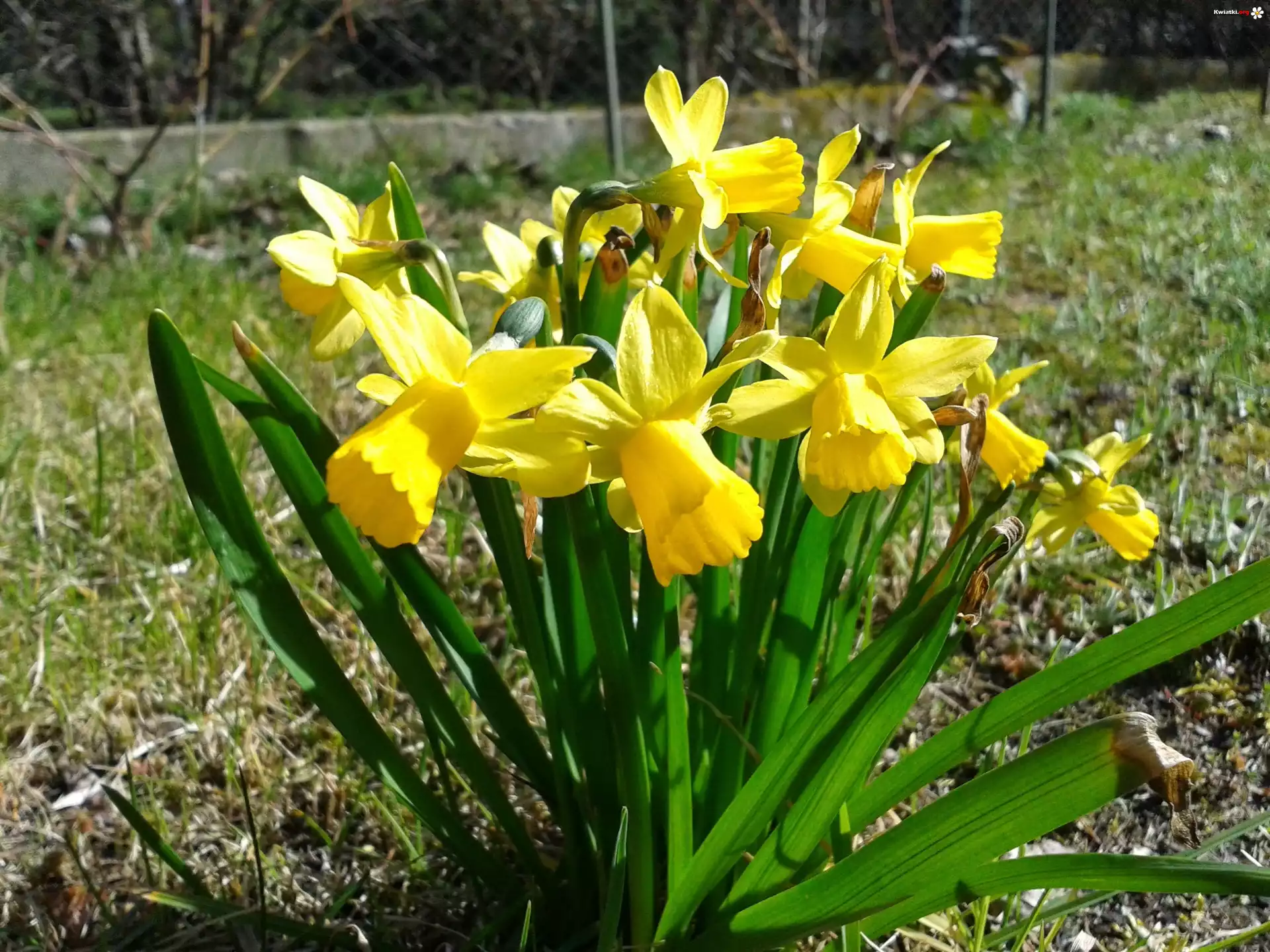 Żonkile, Żółte, Bukiet, Trawa - Zdjęcia