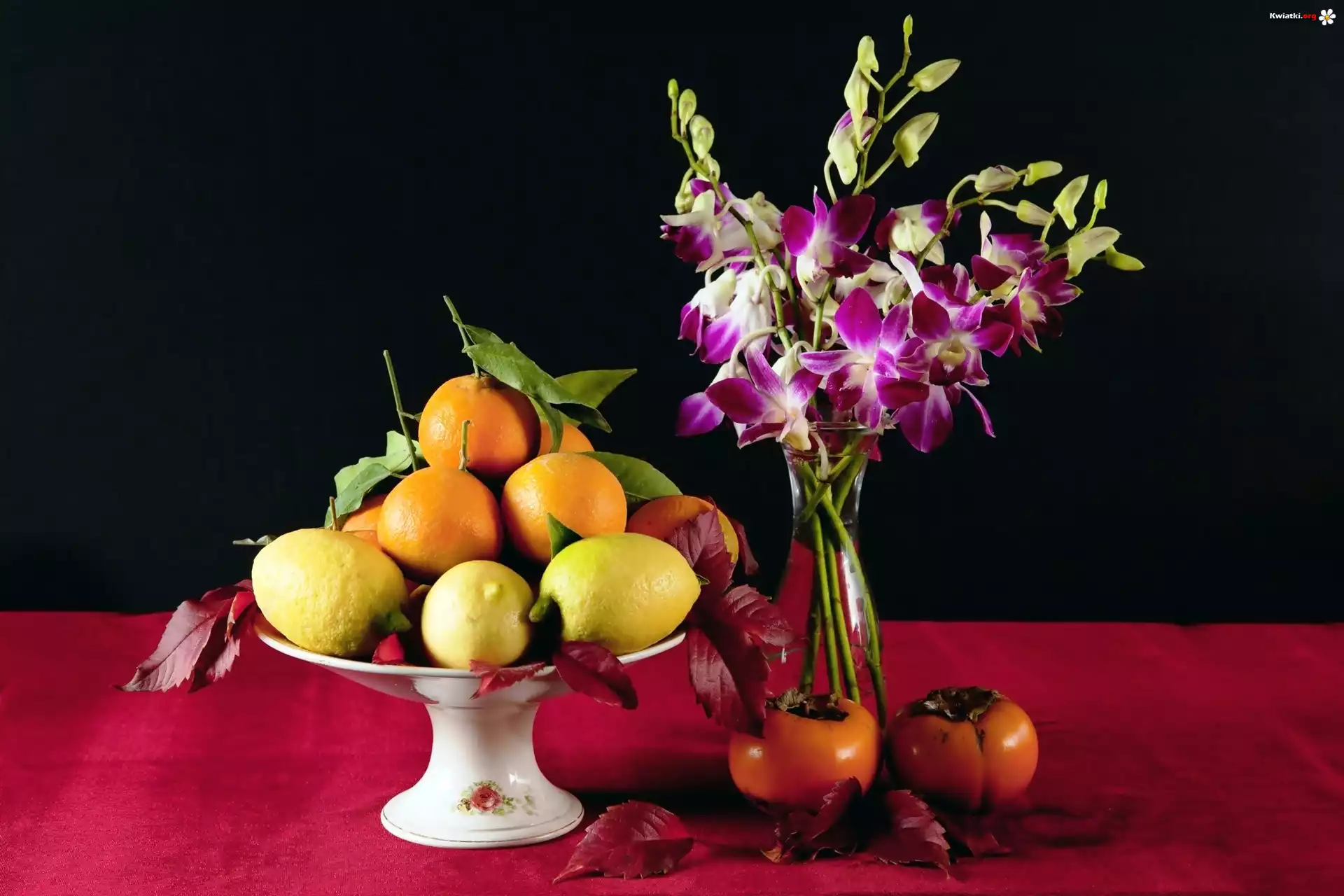 Kwiat Bukiet, Wazon, Owoce, Cytryny