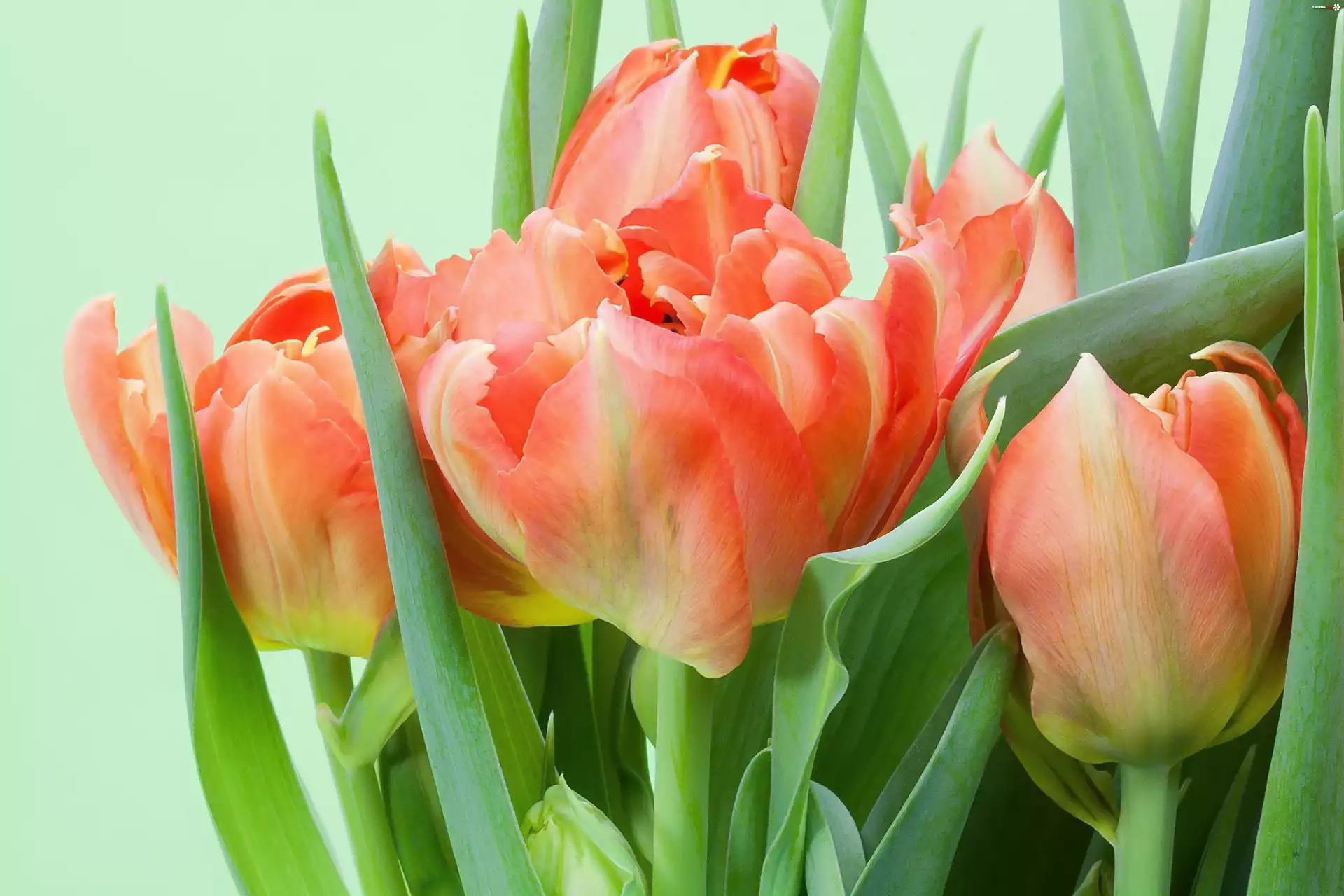 Kwiat Bukiet, Jasno, Pomarańczowych, Tulipanów