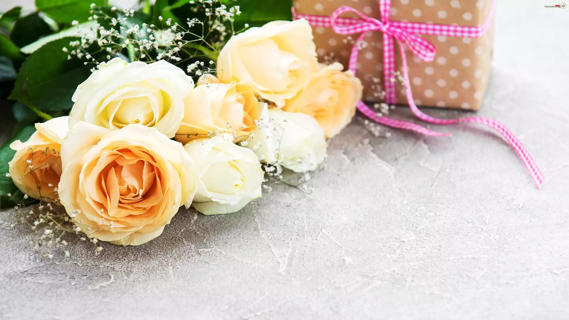 Bukiet, Róże, Prezent, Wstążka - Zdjęcia