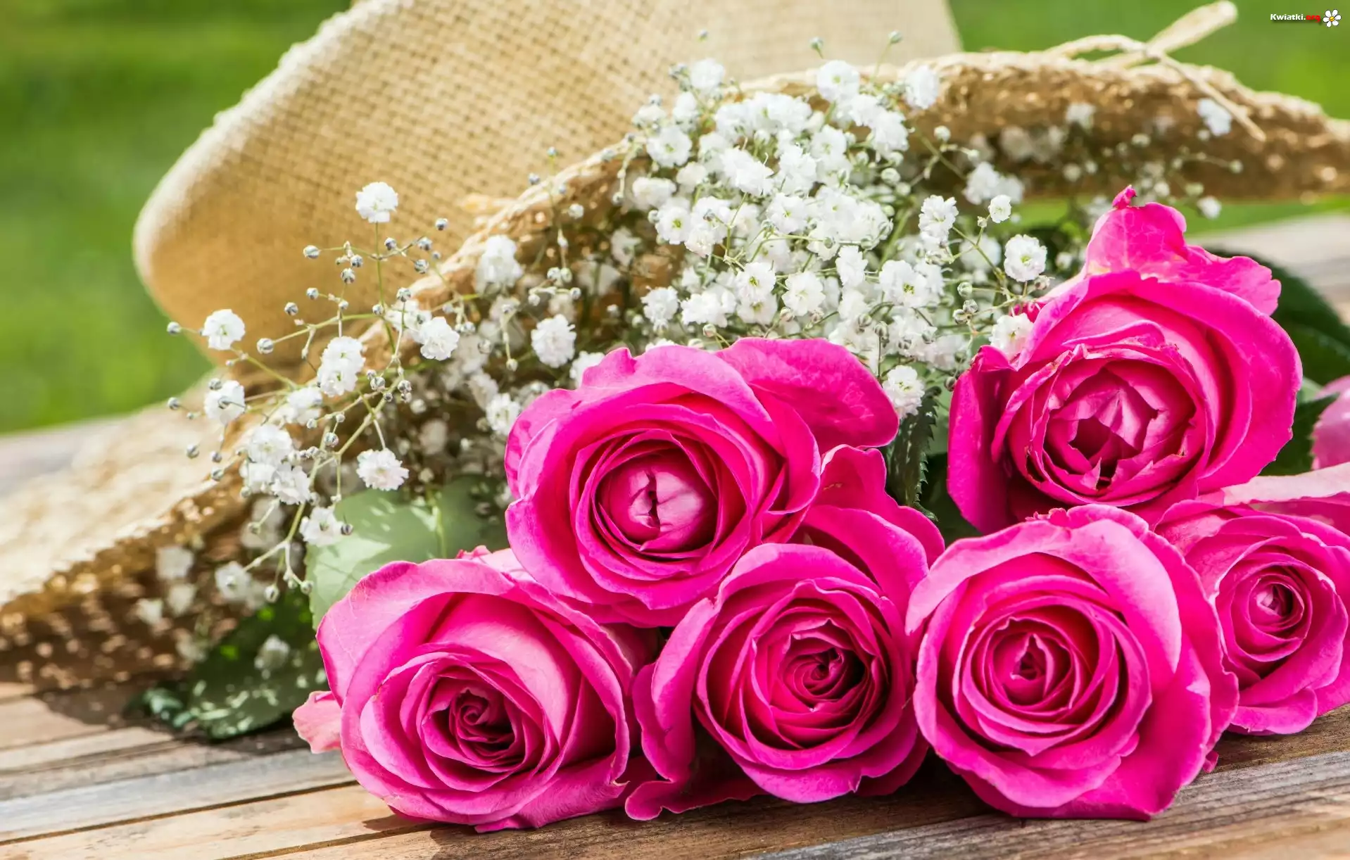 Bukiet, Różowych, Róż, Kapelusz - Zdjęcia