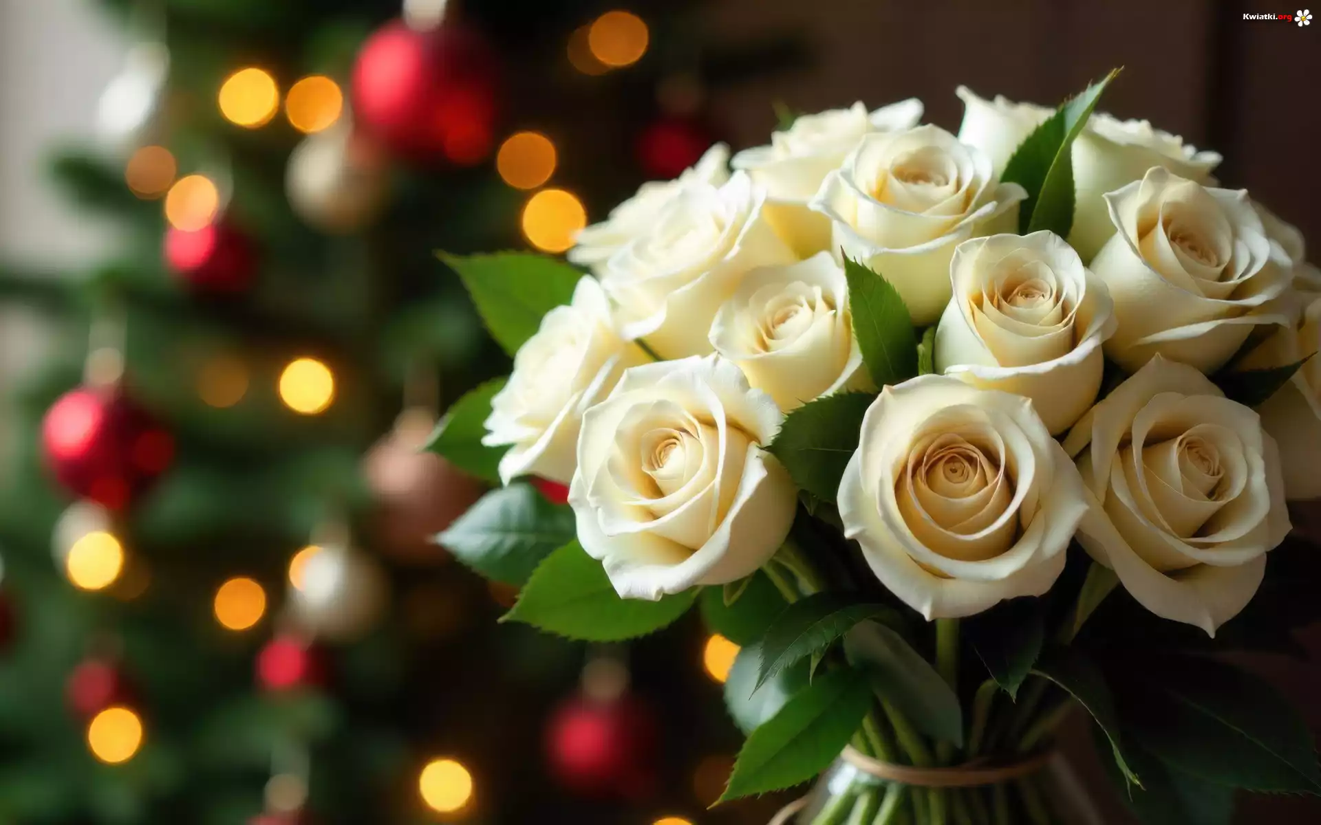 Kwiaty, Białe, Róże, Bukiet, Światła, Grafika AI - Zdjęcia
