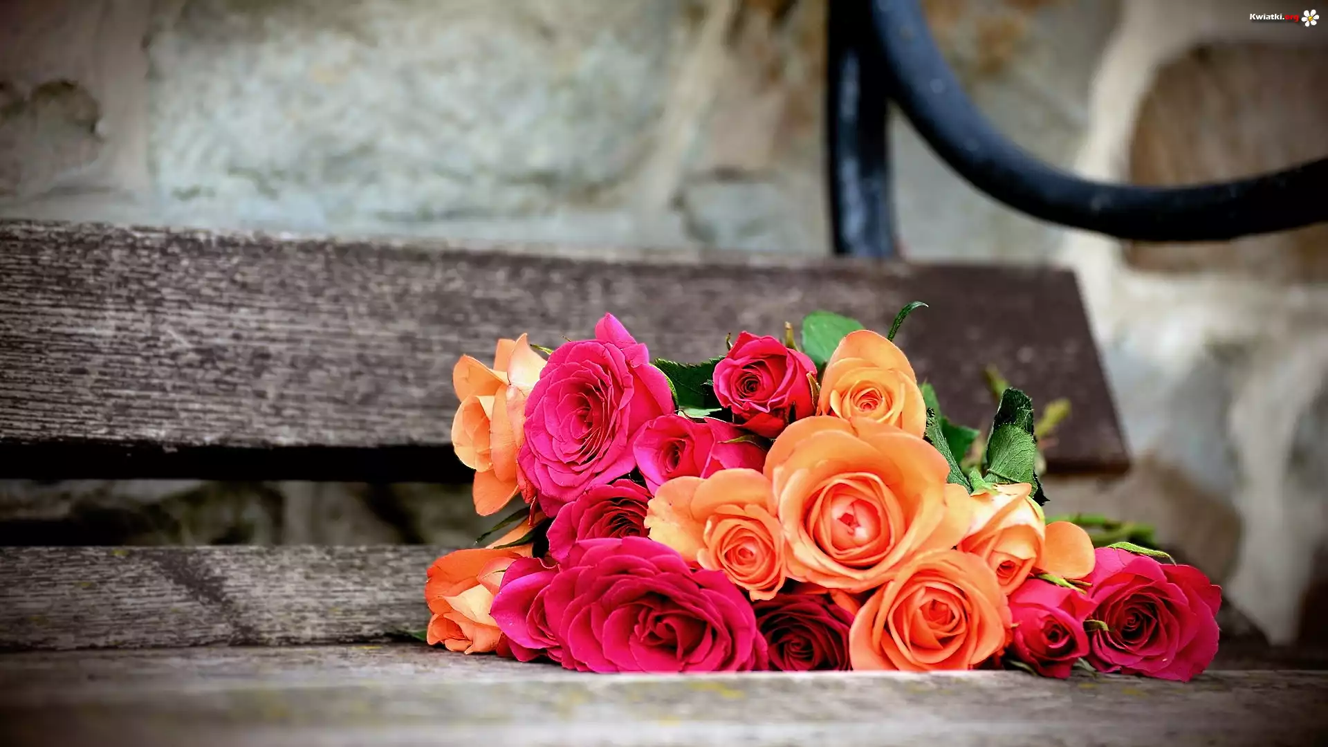 Kwiat Bukiet, Kolorowe, Róże, Ławka