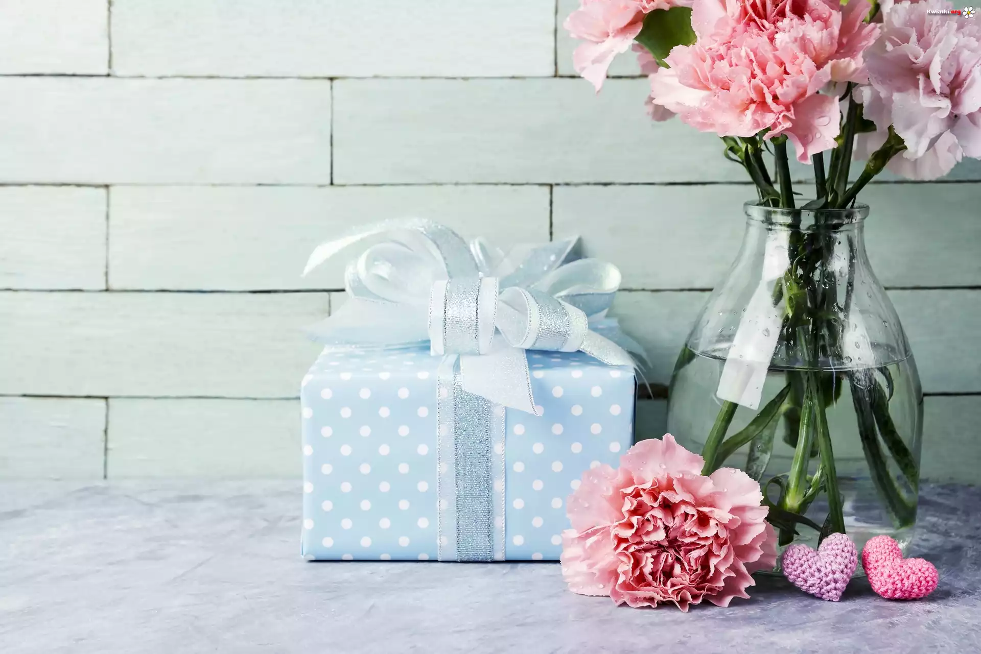 Kwiat Bukiet, Goździki, Flakon, Prezent, Serca, Walentynki