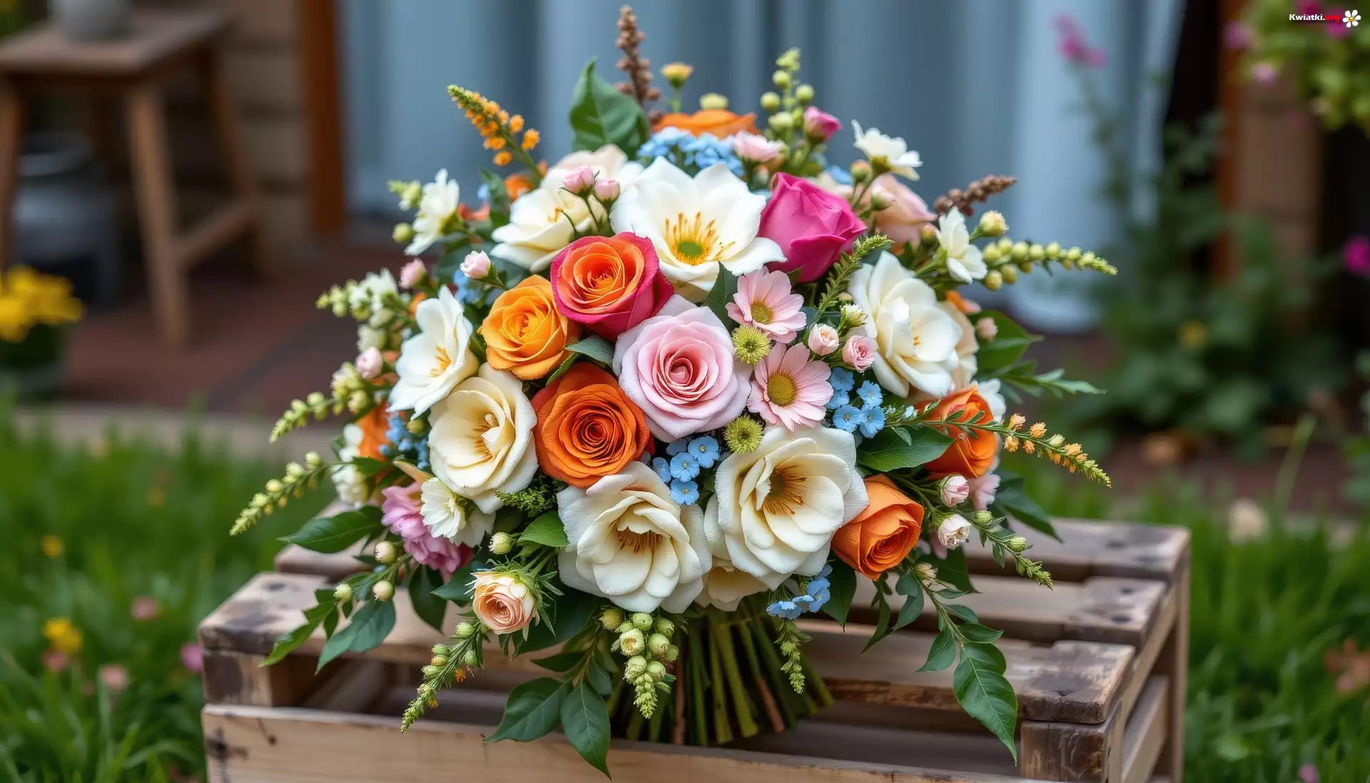 Kwiaty, Bukiet, Skrzynka, Grafika AI - Zdjęcia