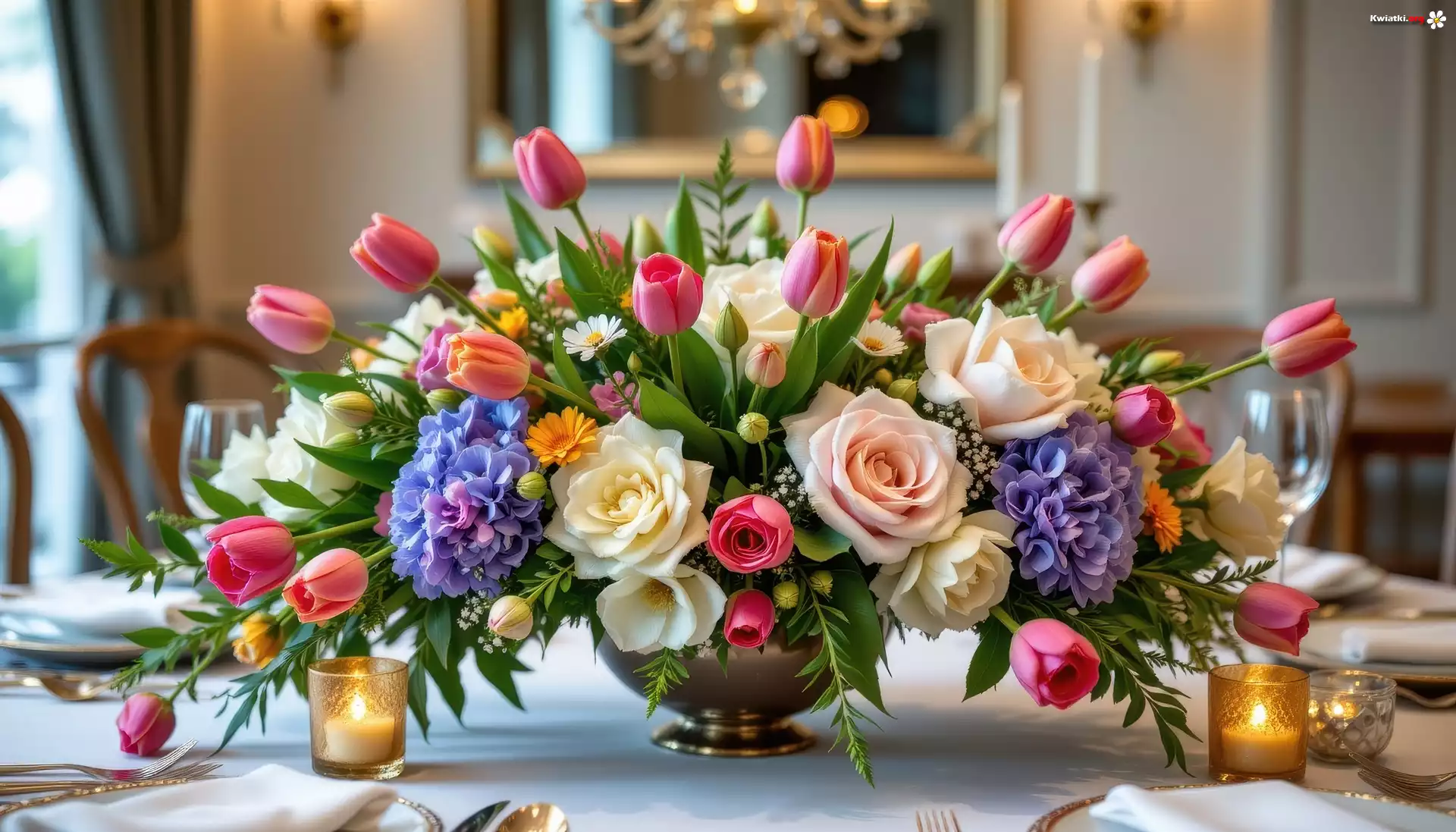 Kwiaty, Bukiet, Świeczki, Grafika AI - Zdjęcia