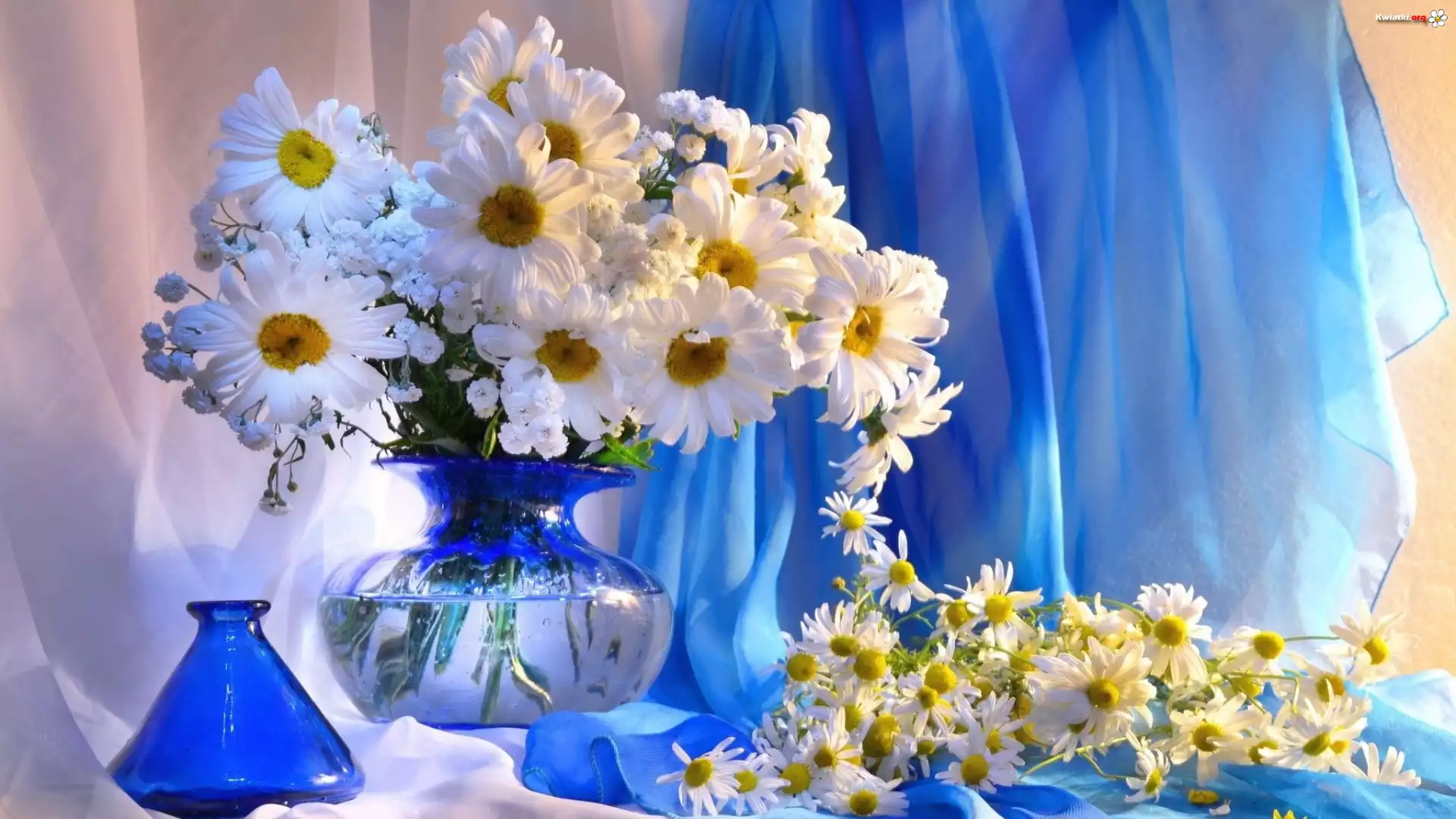 Bukiet, Białe, Margerytki, Wazon, Tkanina, Kompozycja - Zdjęcia