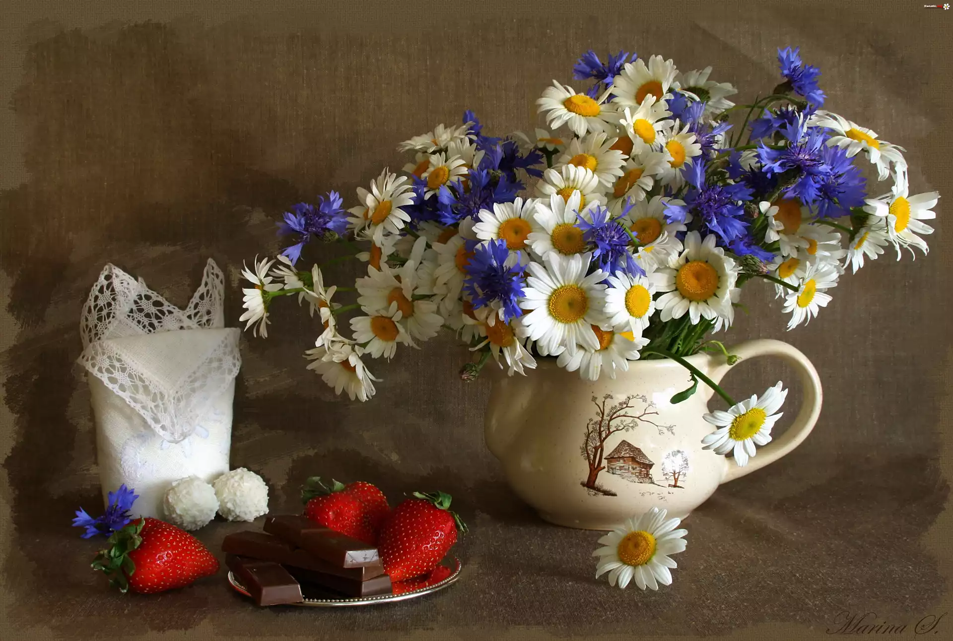 Bukiet, Polnych, Kwiatów, Truskawki, Cukierki - Zdjęcia