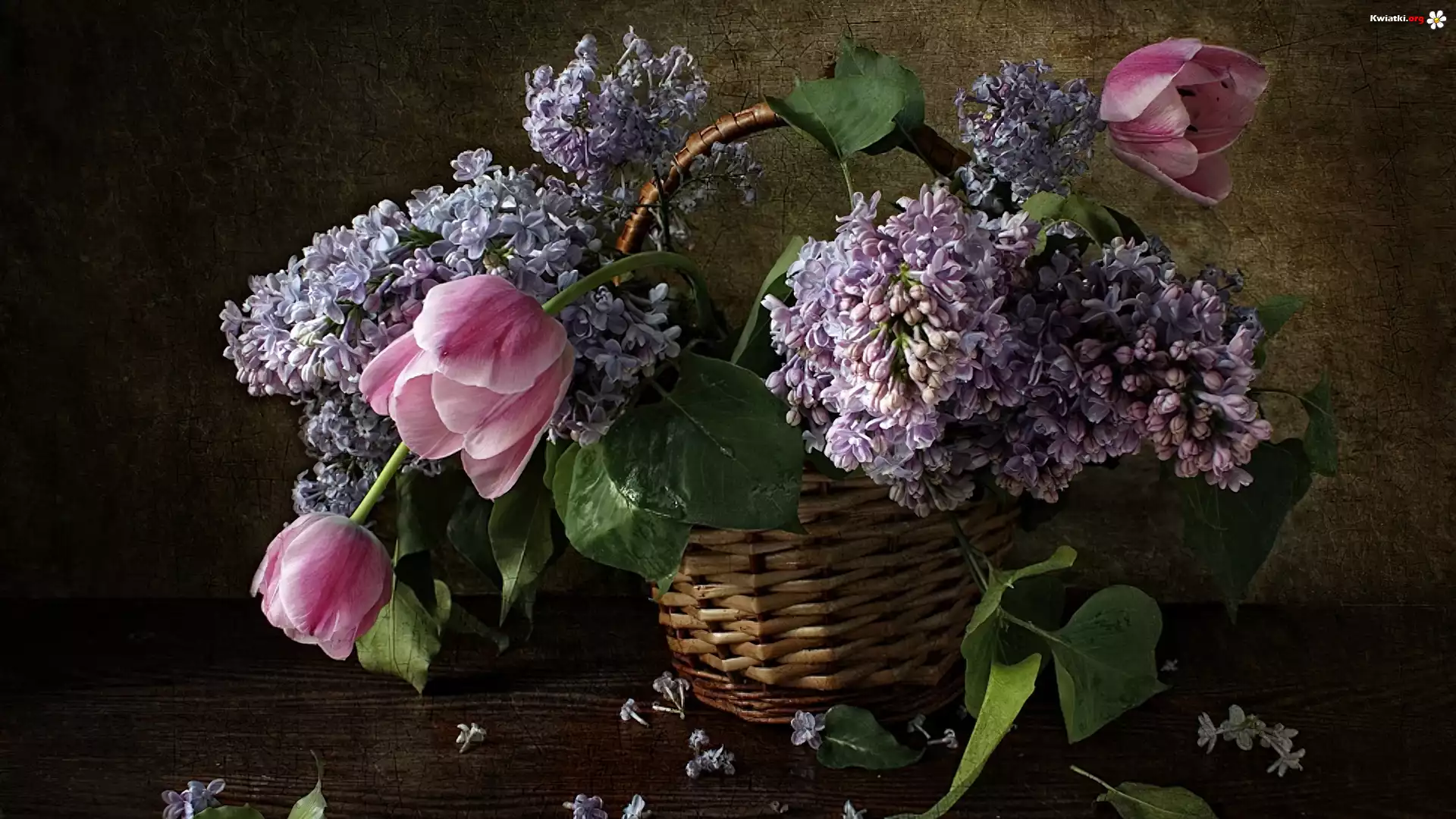 Bukiet, Kwiatów, Bzy, Tulipany, Koszyk - Zdjęcia