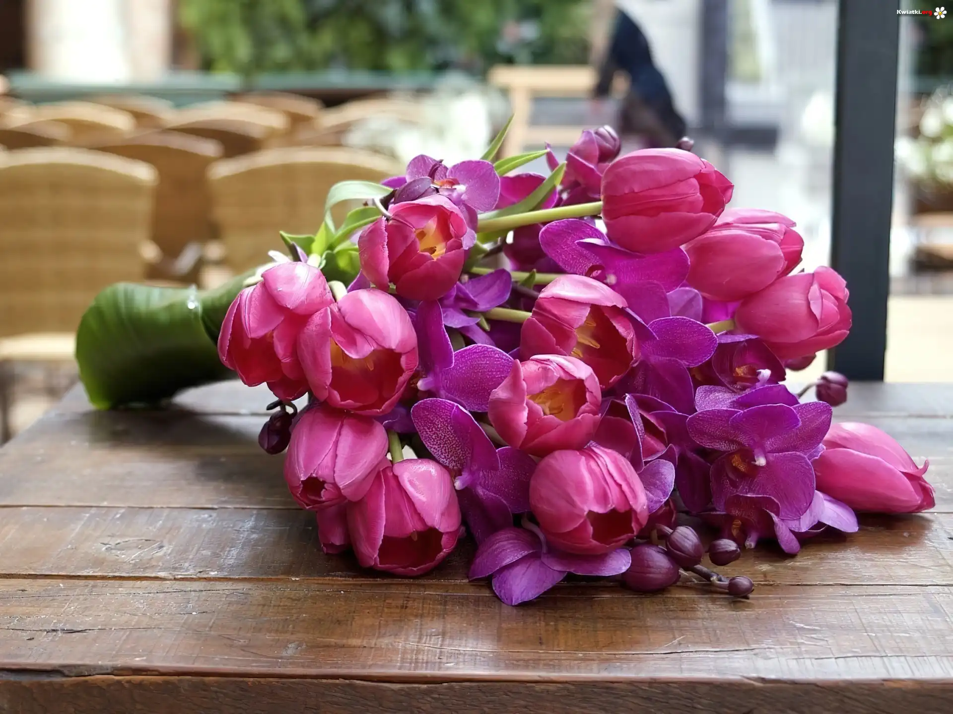 Bukiet, Kwiaty, Tulipany, Storczyki - Zdjęcia