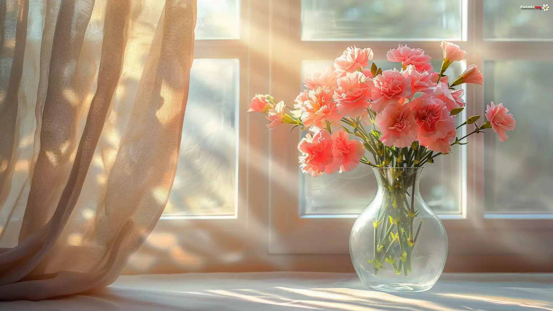 Kwiaty, Goździki, Wazon, Bukiet, Okno, Przebijające światło - Zdjęcia