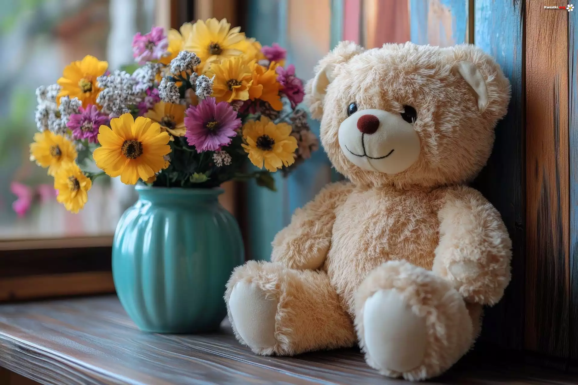 Kwiat Kwiaty, Bukiet, Wazon, Pluszowy, Miś