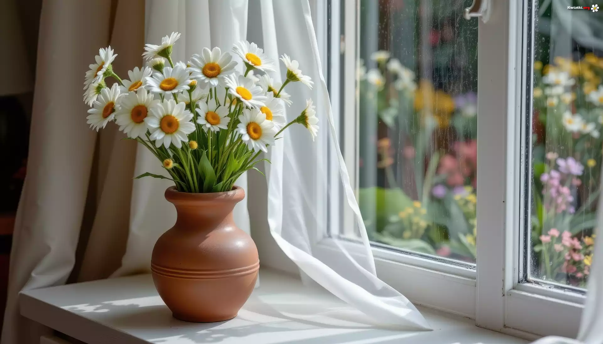 Kwiaty, Bukiet, Wazon, Okno, Parapet - Zdjęcia