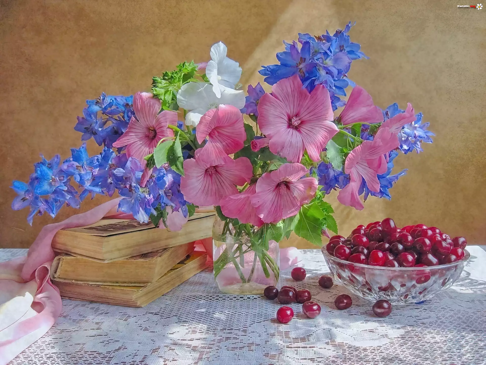 Bukiet, Kwiatów, Wiśnie, Książki - Zdjęcia