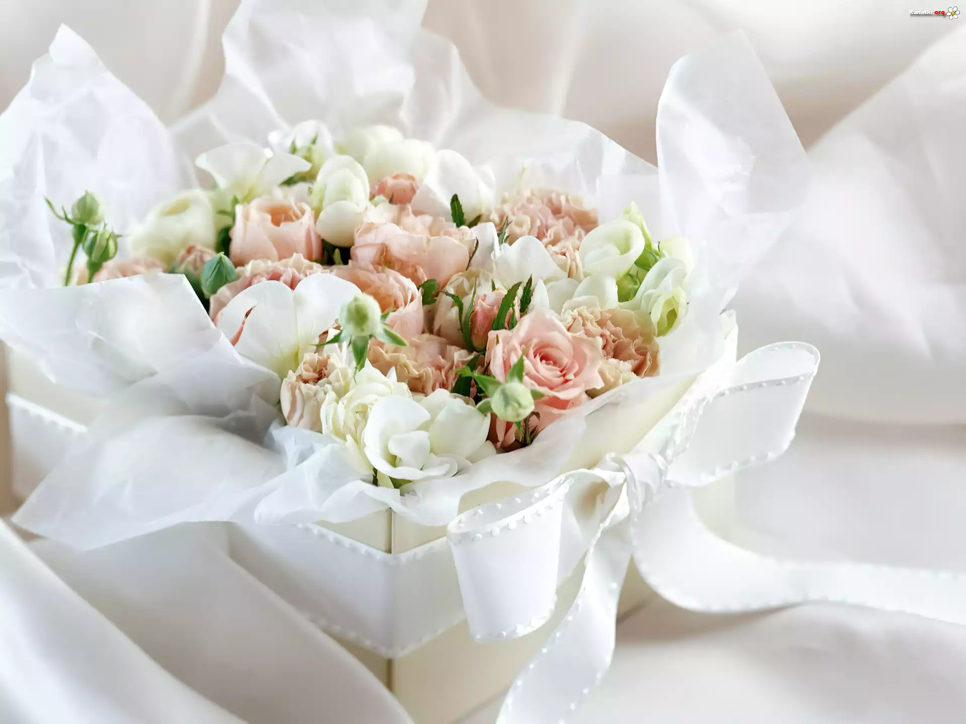 Kwiat Bukiet, Różyczek, Biała, Wstążeczka, Pudełko