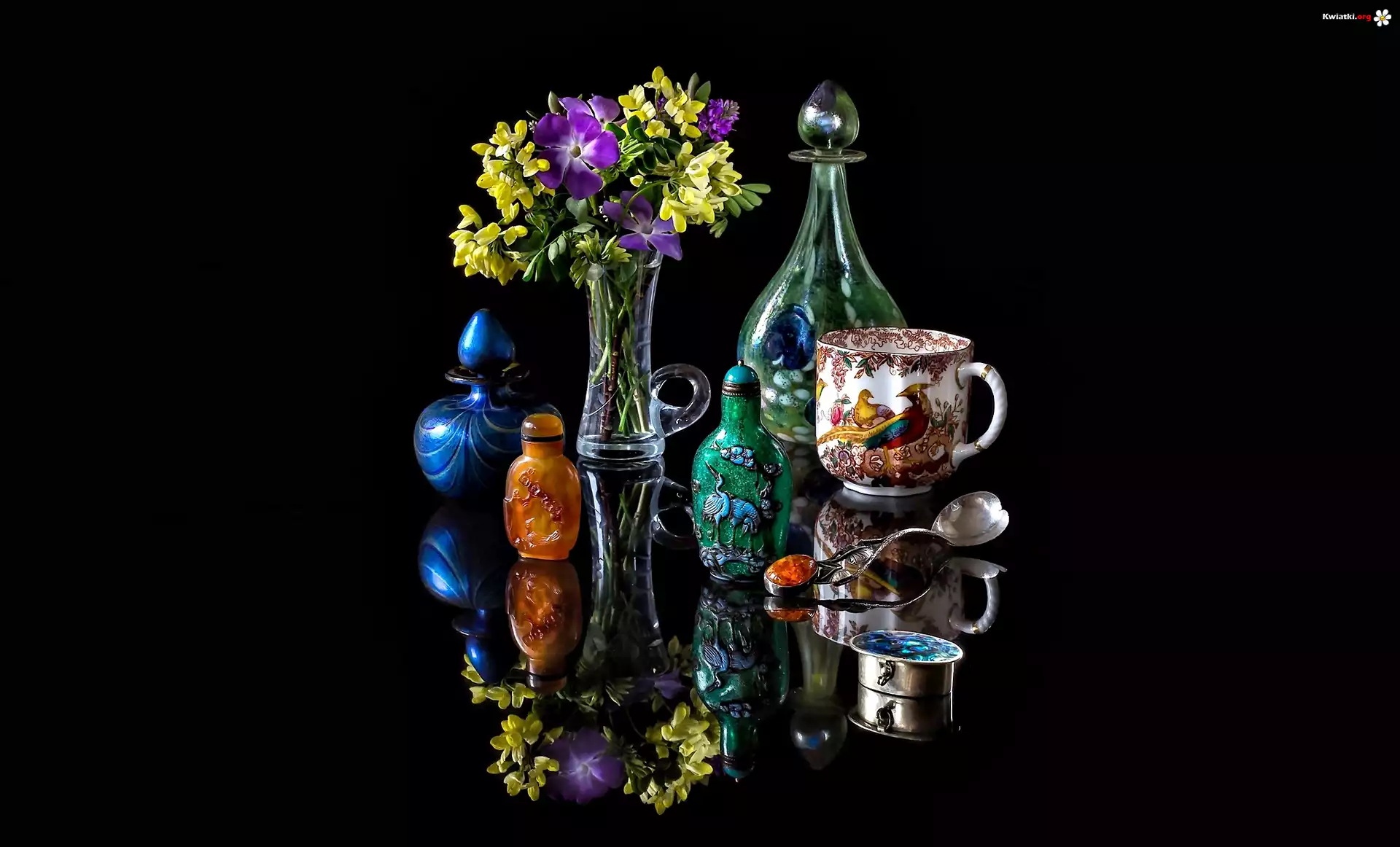 Kwiat Wazon, Bukiet, Kwiaty, Karafka, Kubek, Flakony, Tabakierka, Łyżeczka