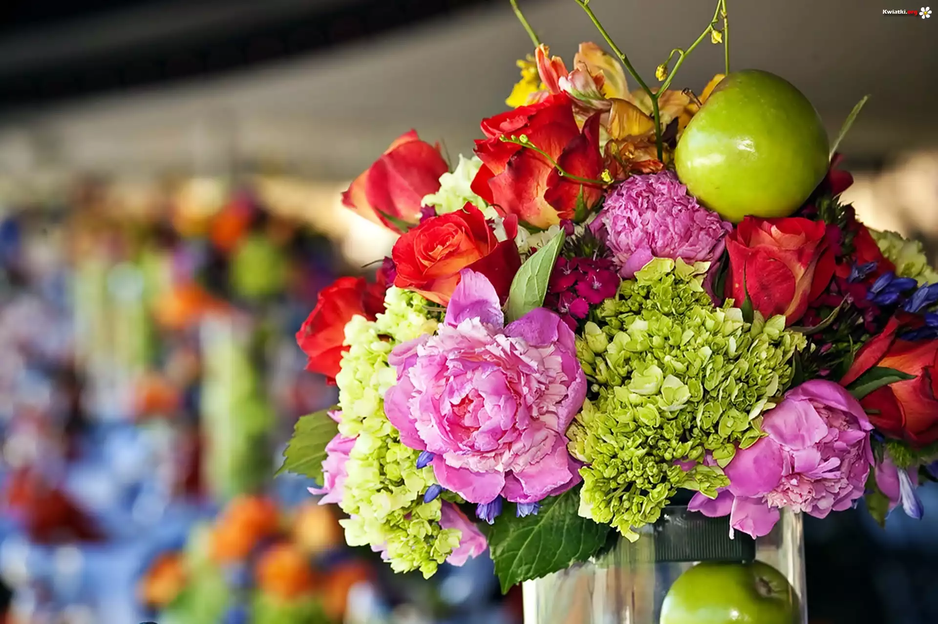 Bukiet, Kwiatów, Zielone, Jabłka - Zdjęcia