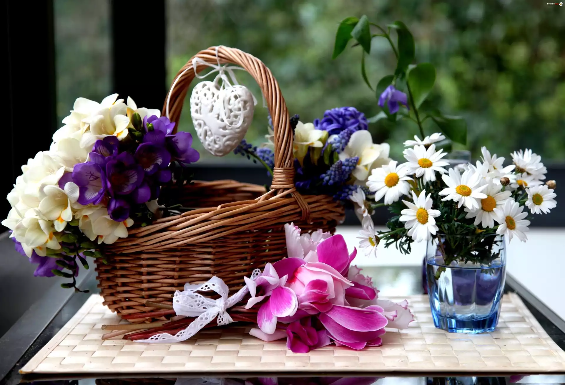 Bukiety, Kwiatów, Wiklinowy, Kosz, Serduszko - Zdjęcia