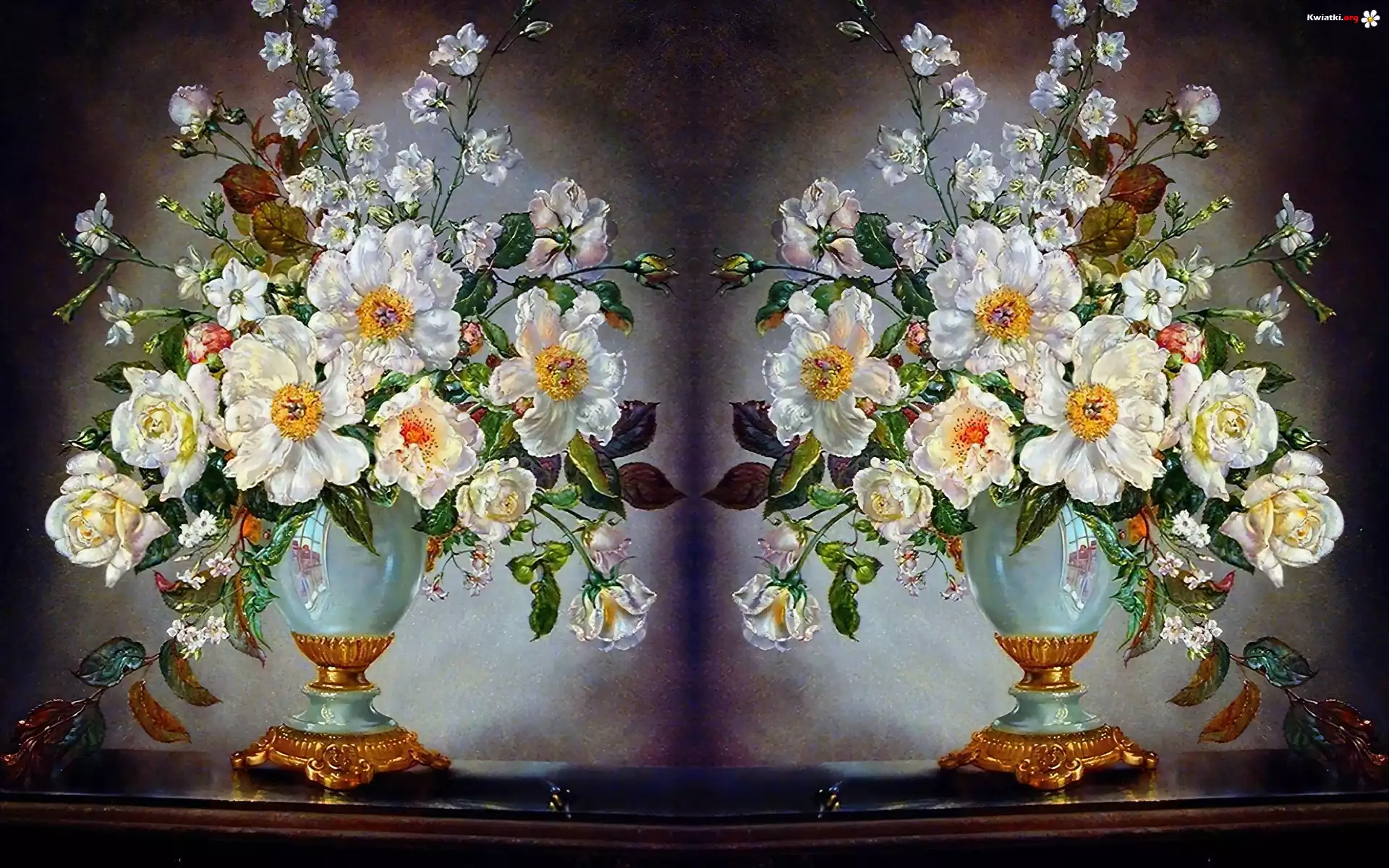 Bukiety, Kwiatów, Szare, Tło, Art - Zdjęcia