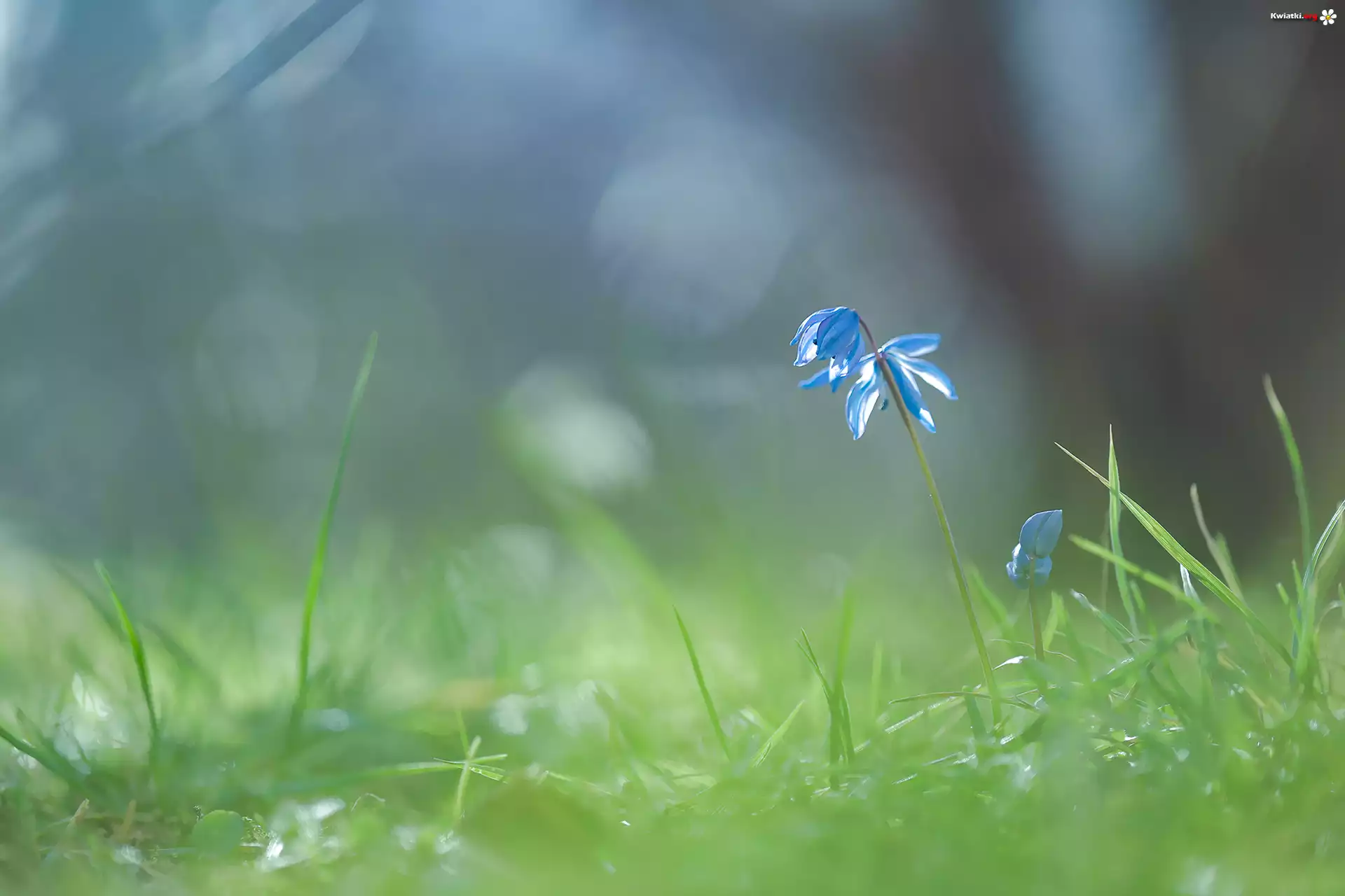 Kwiat Cebulica syberyjska, Niebieski, Kwiat, Trawa