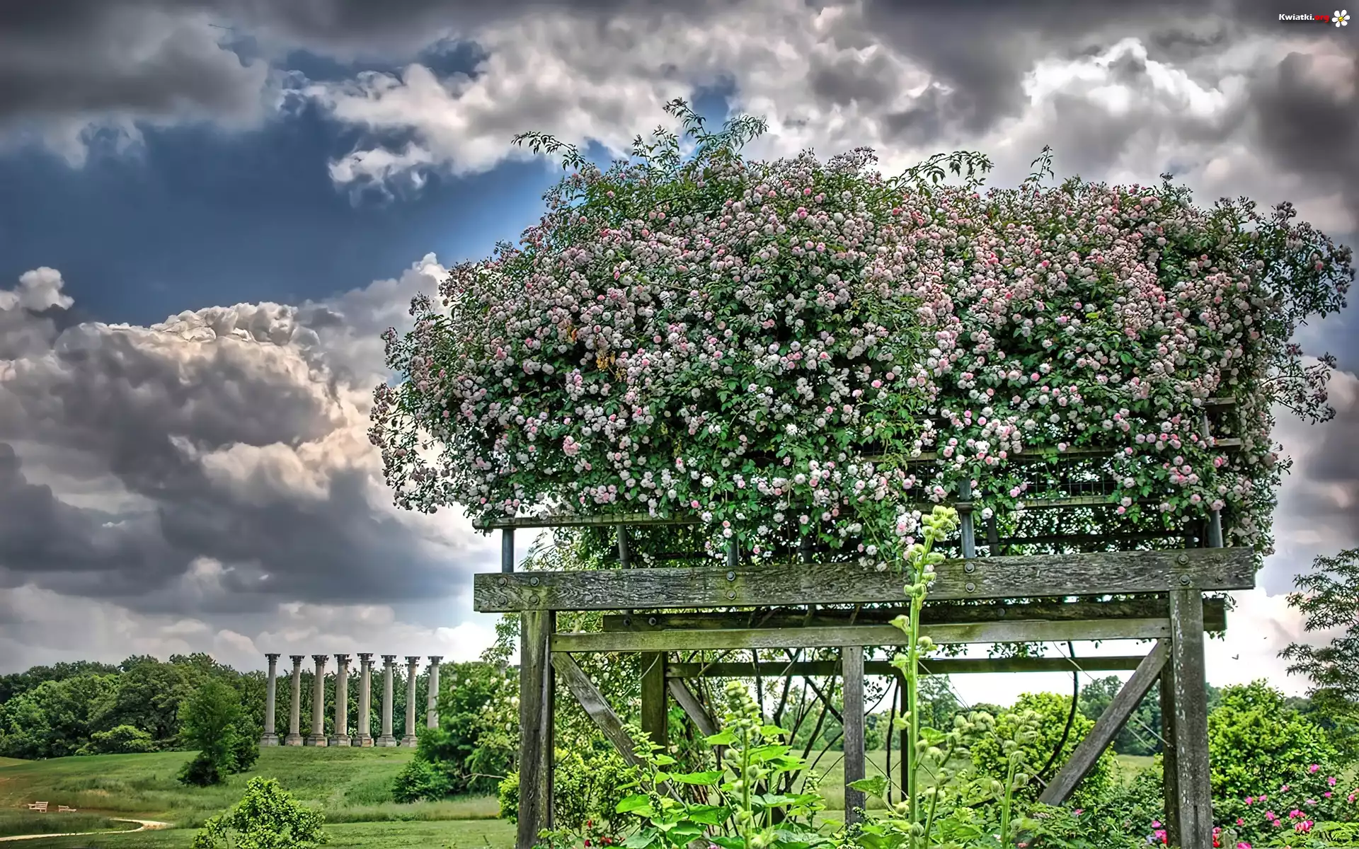Chmury, Kwiaty, Rośliny, Drewniana, Podpórka - Zdjęcia