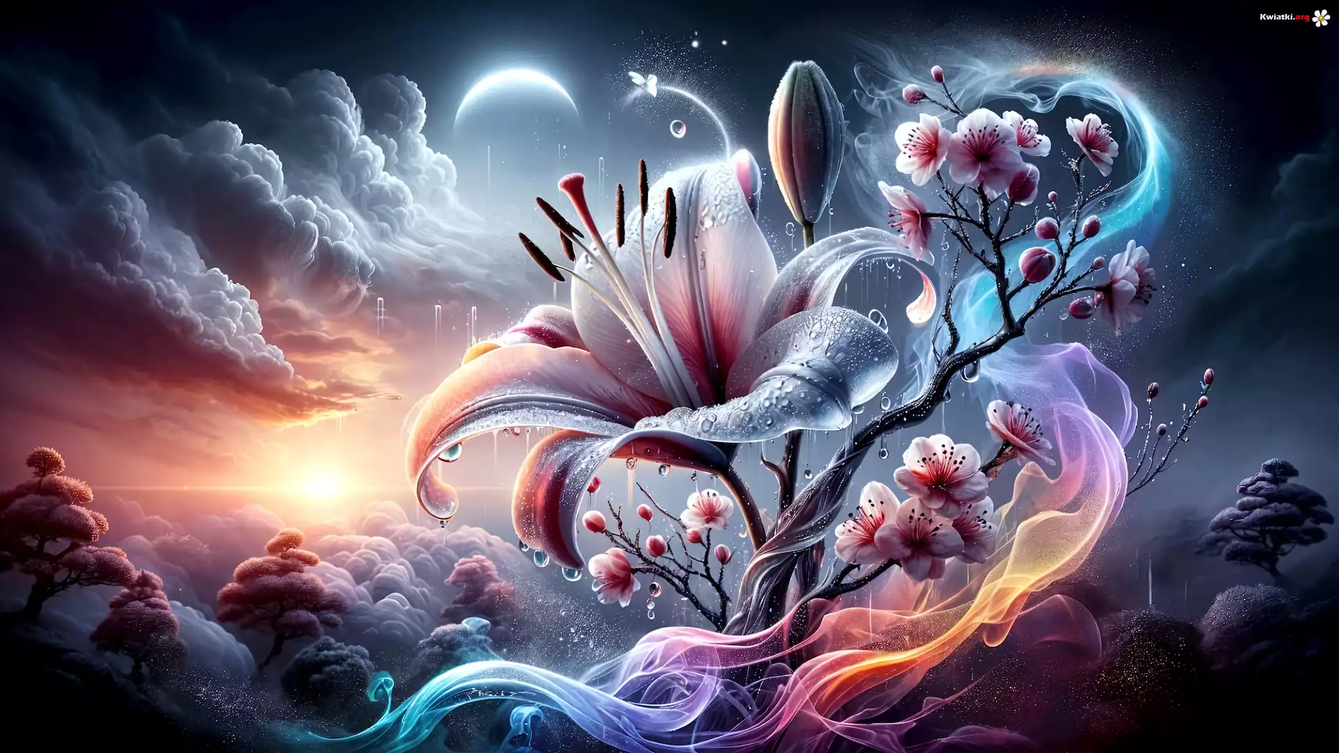 Kwiat Kwiat, Lilia, Grafika, Chmury