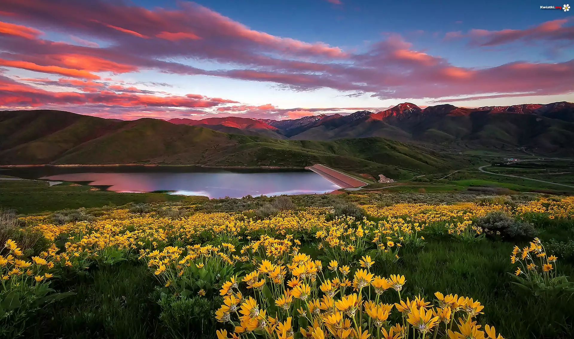 Kwiat Chmury, Góry, Jezioro, Łąka, Żółte, Kwiaty
