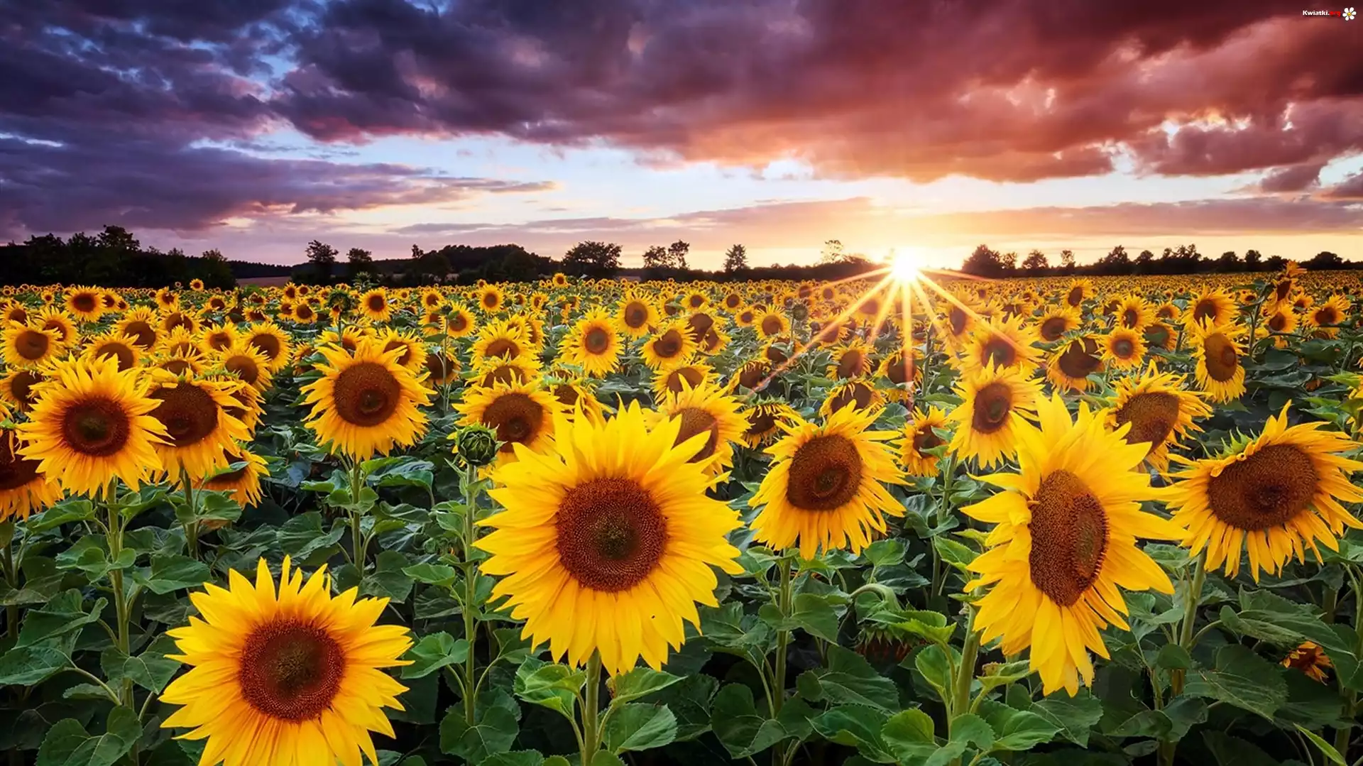 Chmury, Słoneczniki, Pole, Promienie, Słońca - Zdjęcia