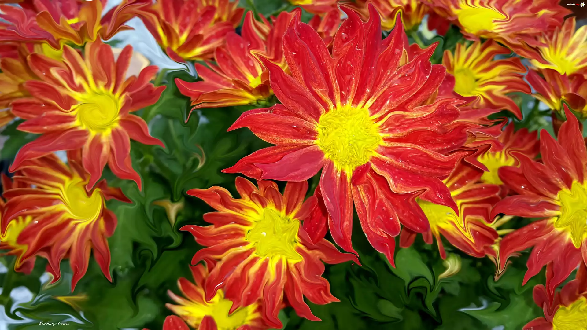 Czerwone, Chryzantemy, Grafika - Zdjęcia