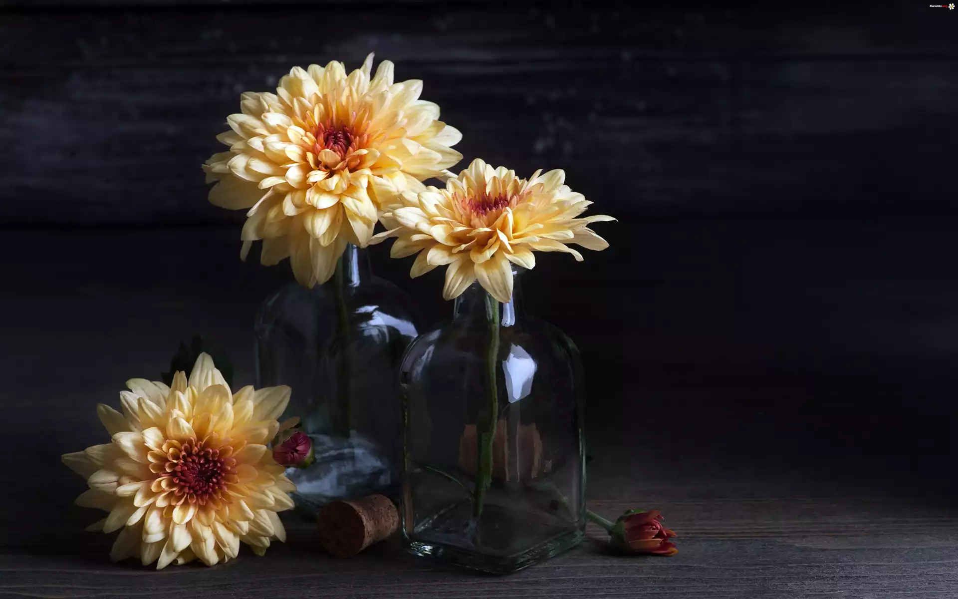 Kwiaty, Chryzantemy, Butelki - Zdjęcia