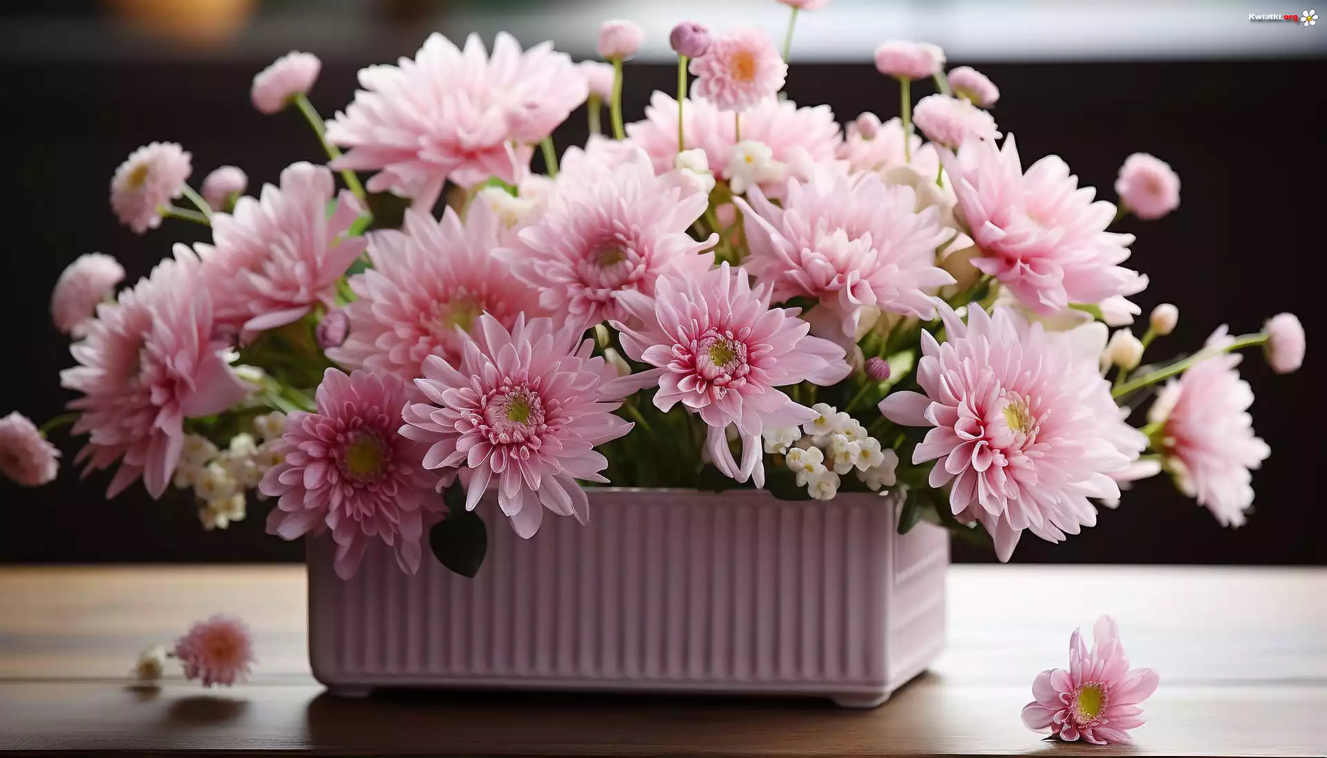 Kwiaty, Chryzantemy, Różowe, Skrzynka, Donica - Zdjęcia