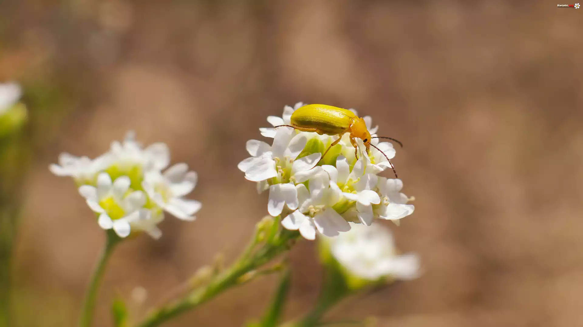 Owad, Chrząszcz, Żółty, Białe, Kwiaty - Zdjęcia