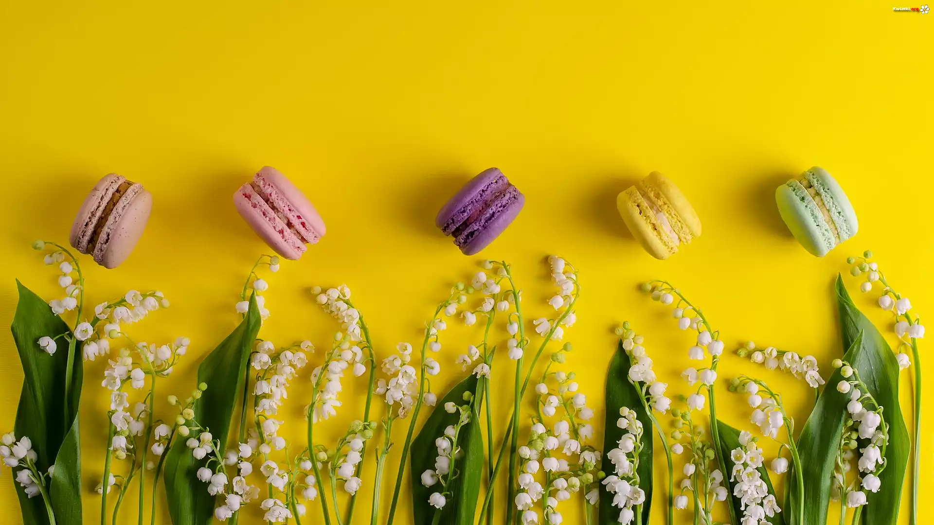 Ciasteczka, Makaroniki, Konwalie, Żółte, Tło - Zdjęcia