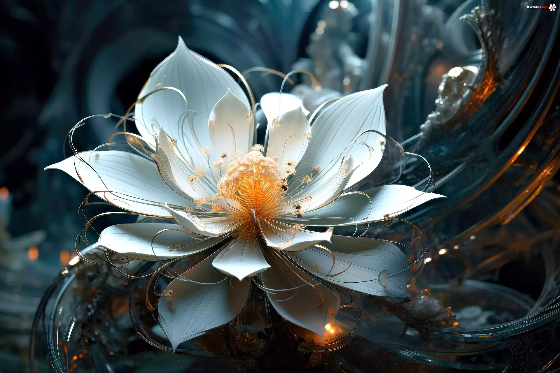 Kwiat, Biały, Światełka, Ciemne, Tło, Grafika - Zdjęcia