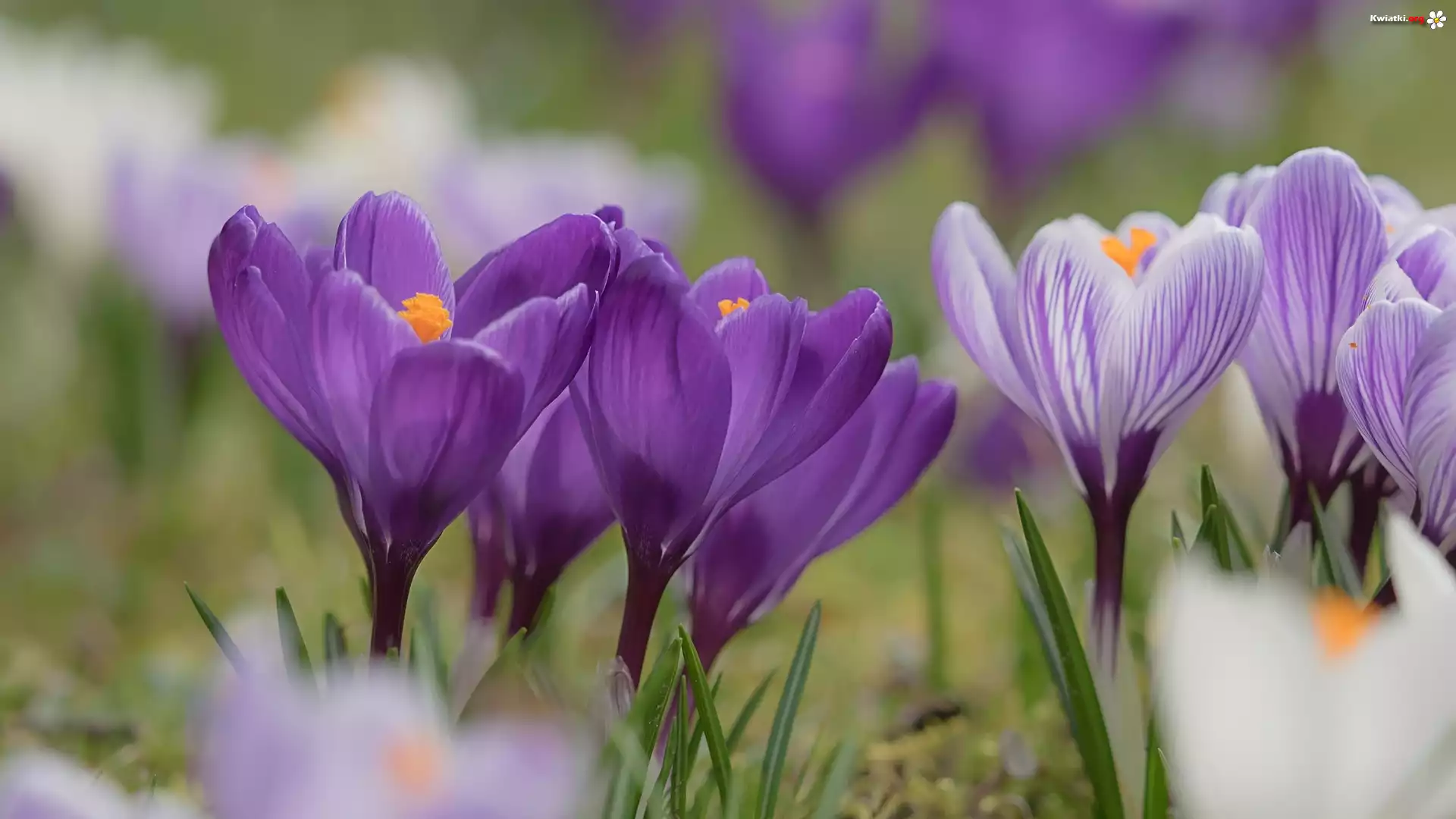 Kwiaty, Ciemnofioletowe, Jasnofioletowe, Krokusy - Zdjęcia
