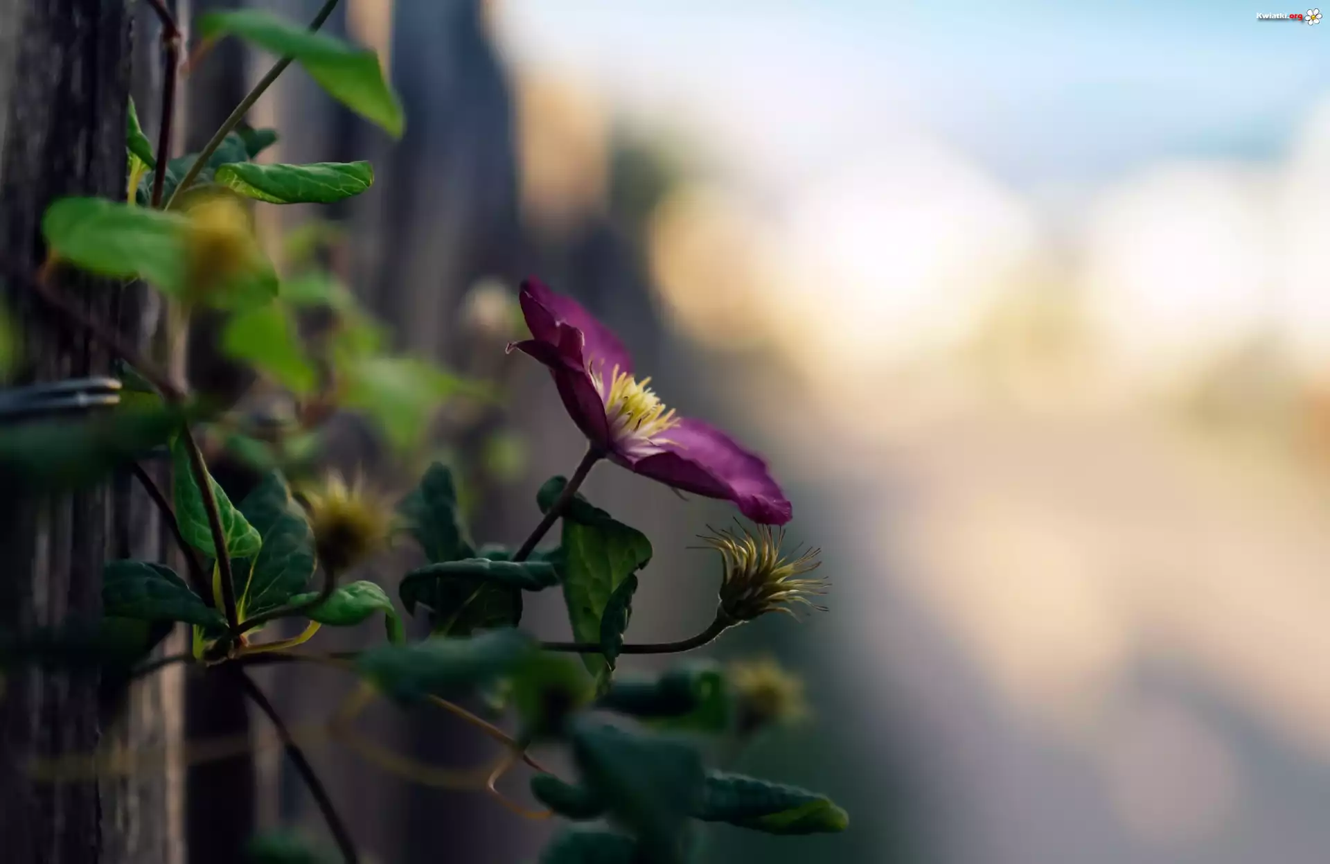 Kwiat Clematis, Kwiat, Liście, Światło