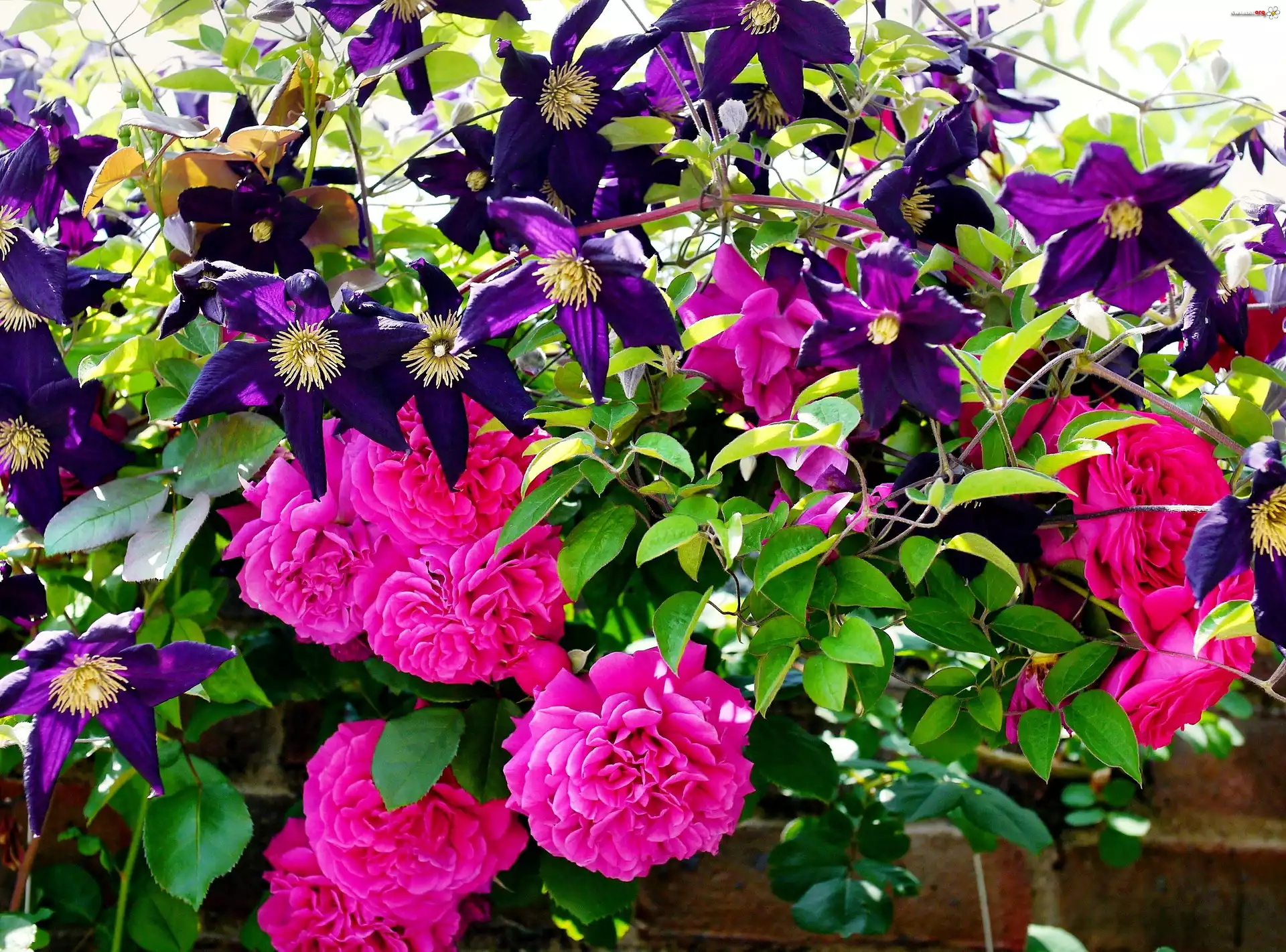 Róże, Clematis, Murek - Zdjęcia