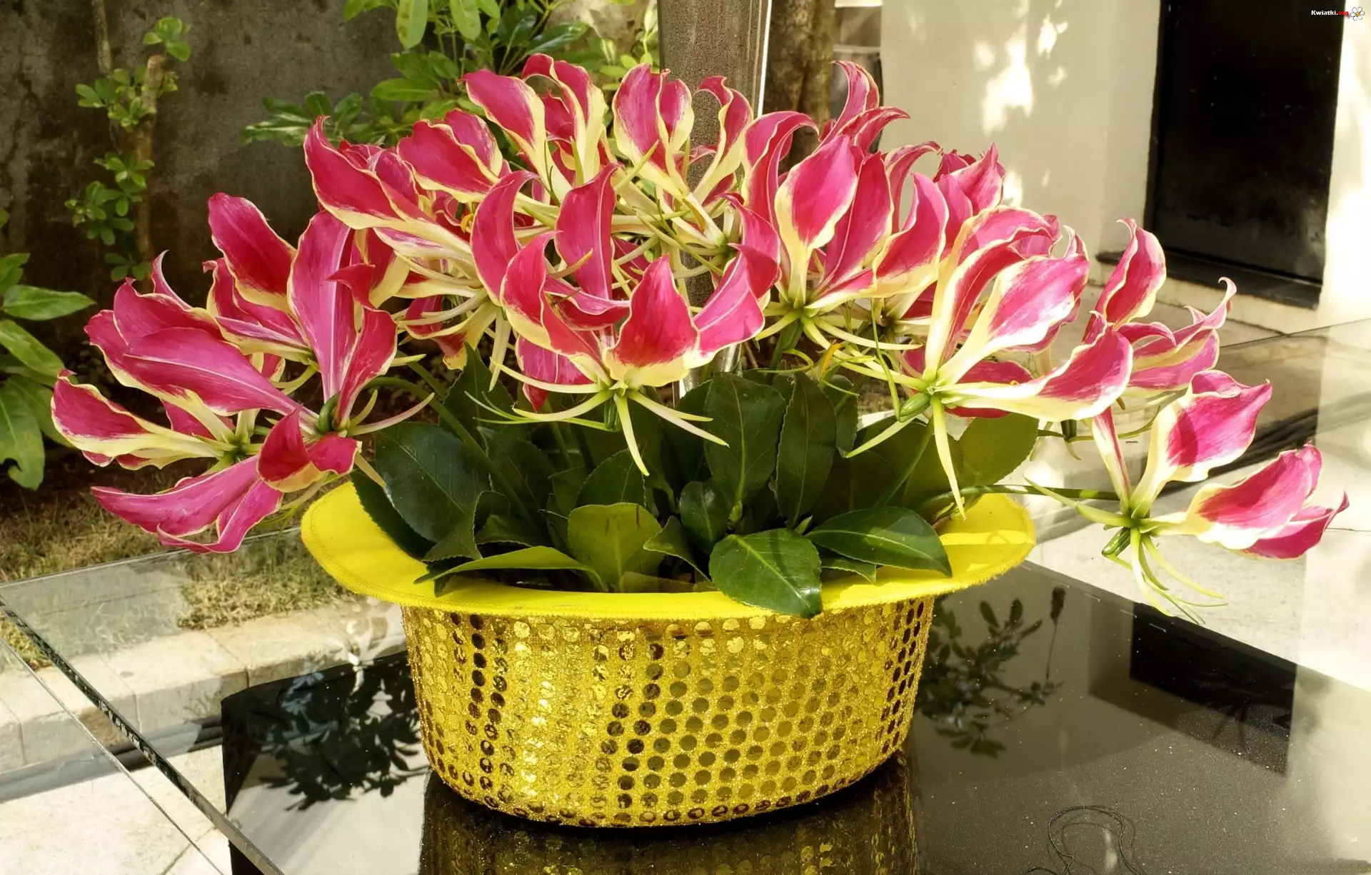 Różowe, Storczyki, Złoty, Cylinder - Zdjęcia