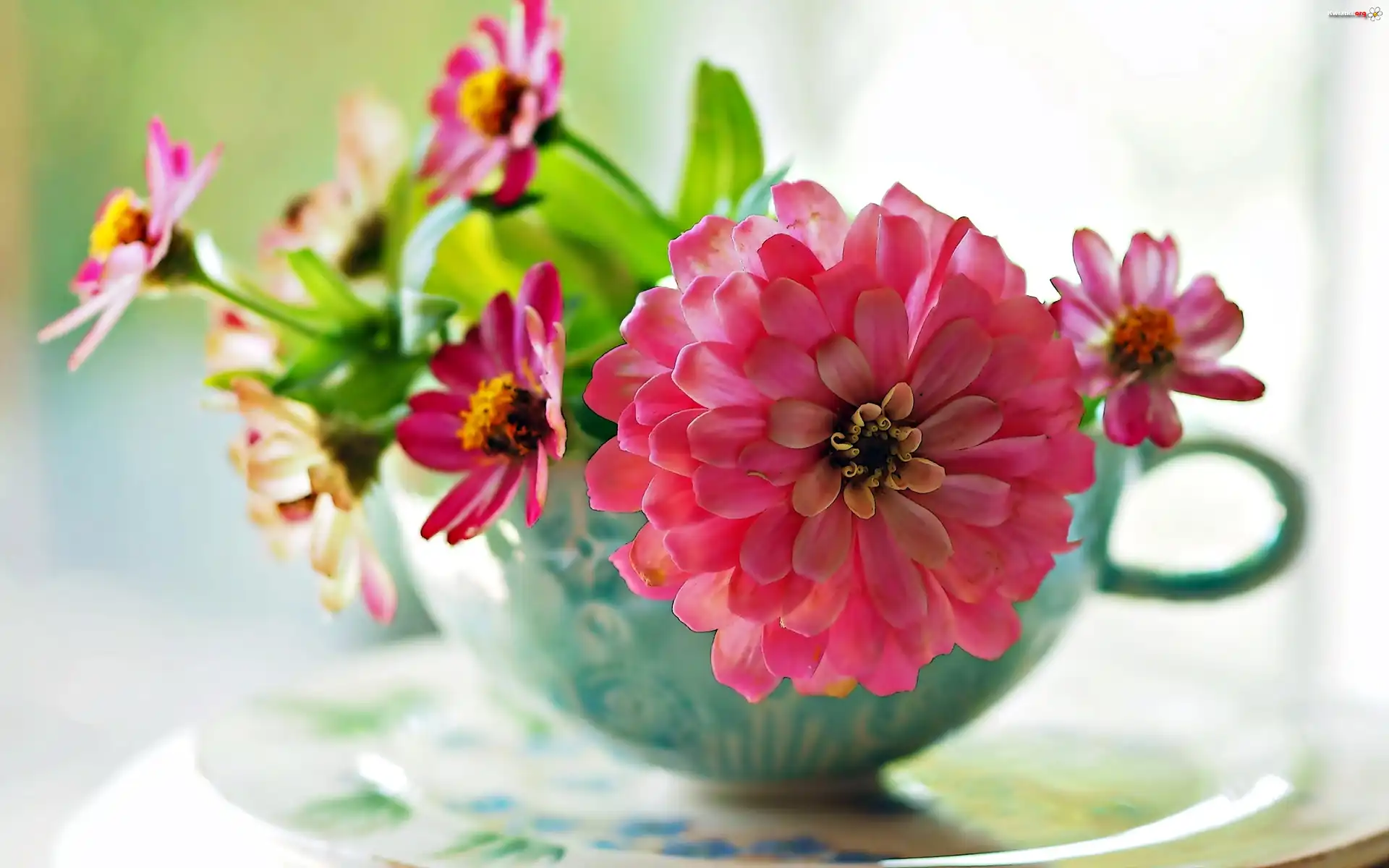 Kwiat Cynia, Kwiaty, Bukiet, Filiżanka