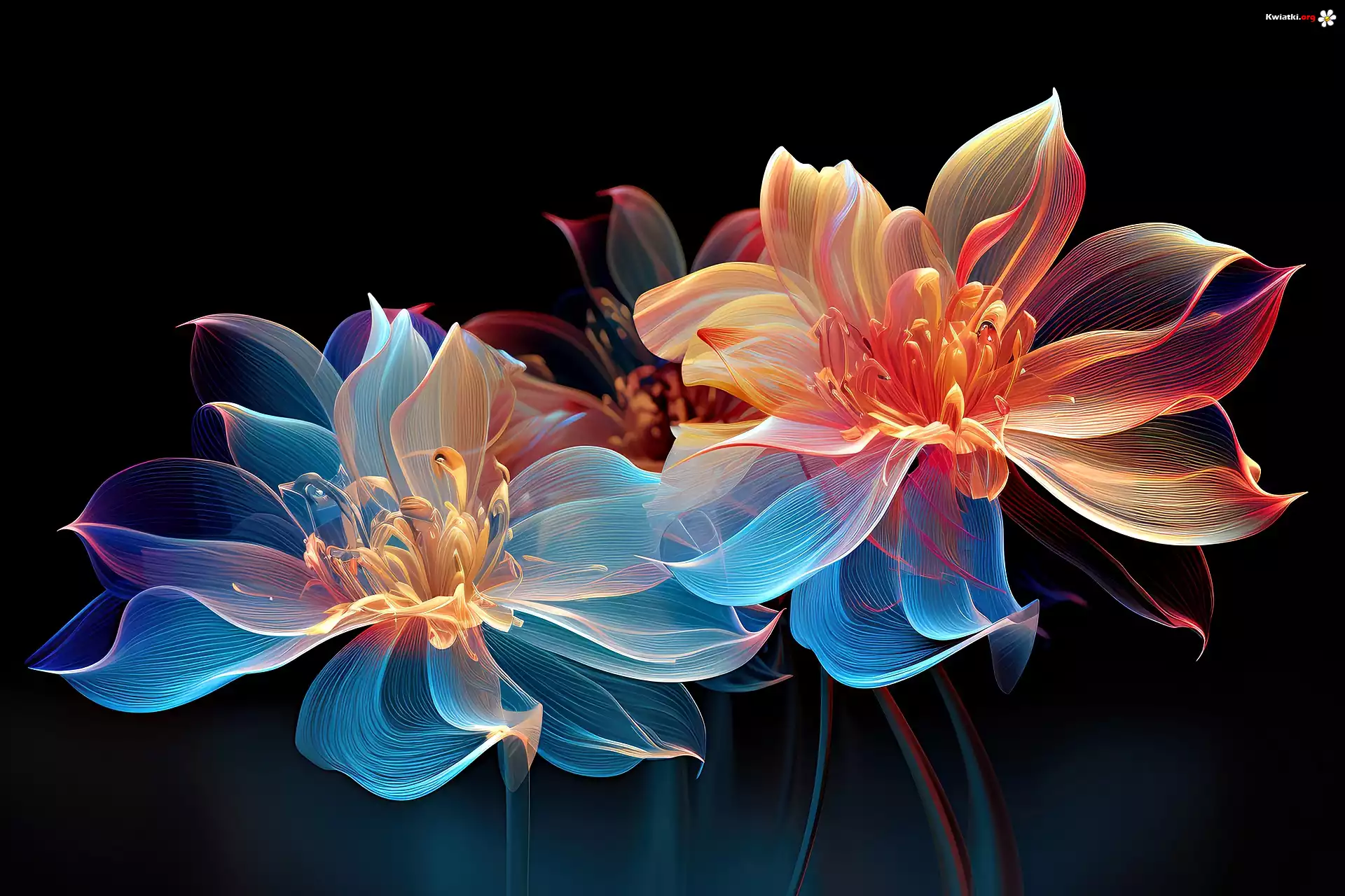 Dwa, Kwiaty, Kolorowe, Czarne, Tło, Grafika - Zdjęcia