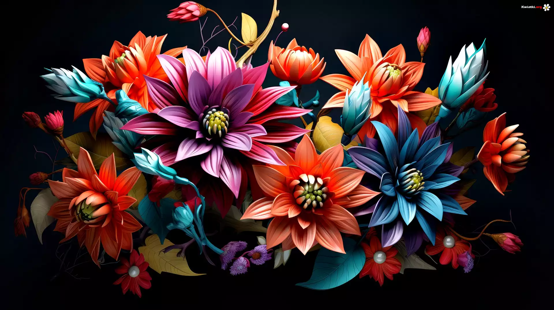 Kwiaty, Kolorowe, Kompozycja, Czarne tło, Grafika - Zdjęcia