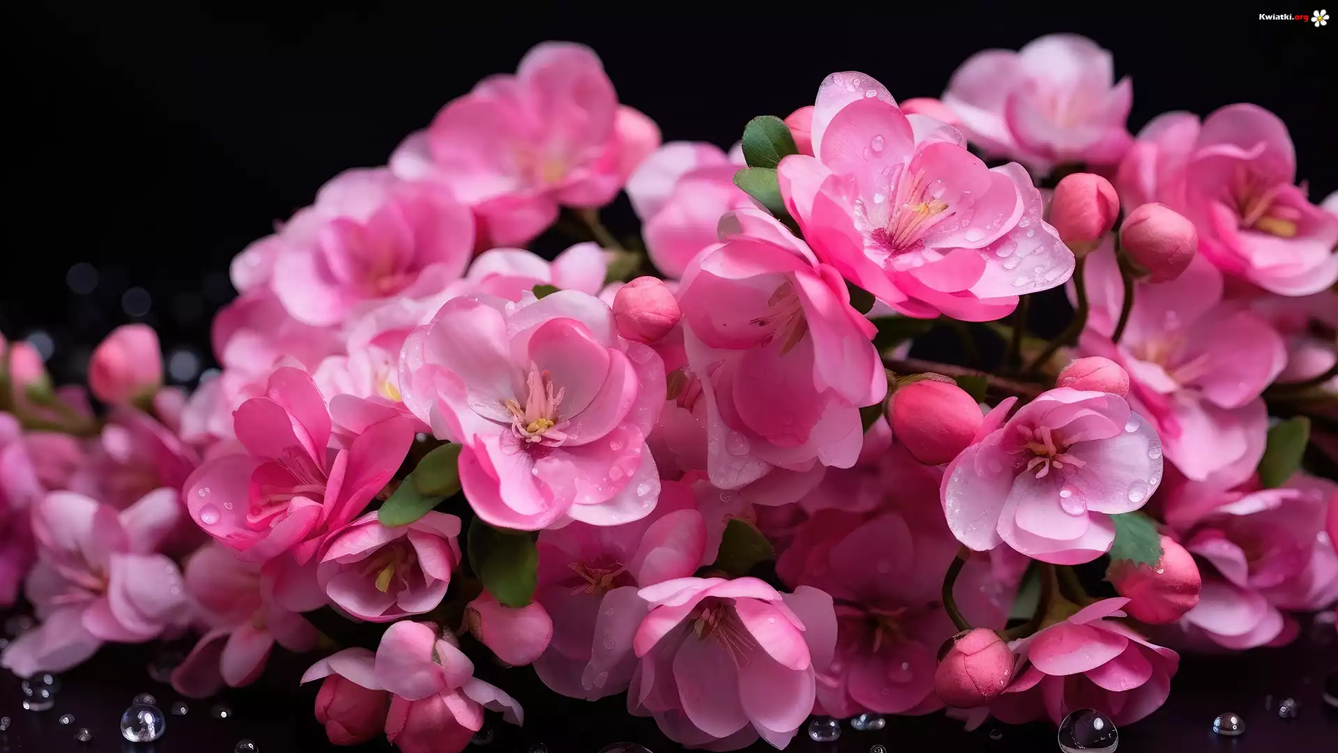 Kwiat Różowe, Kwiaty, Krople, Czarne tło, Grafika