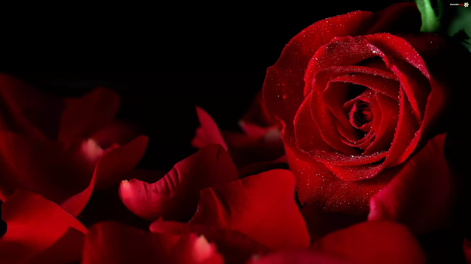 Czerwona, Róża, Płatki, Czarne, Tło - Zdjęcia