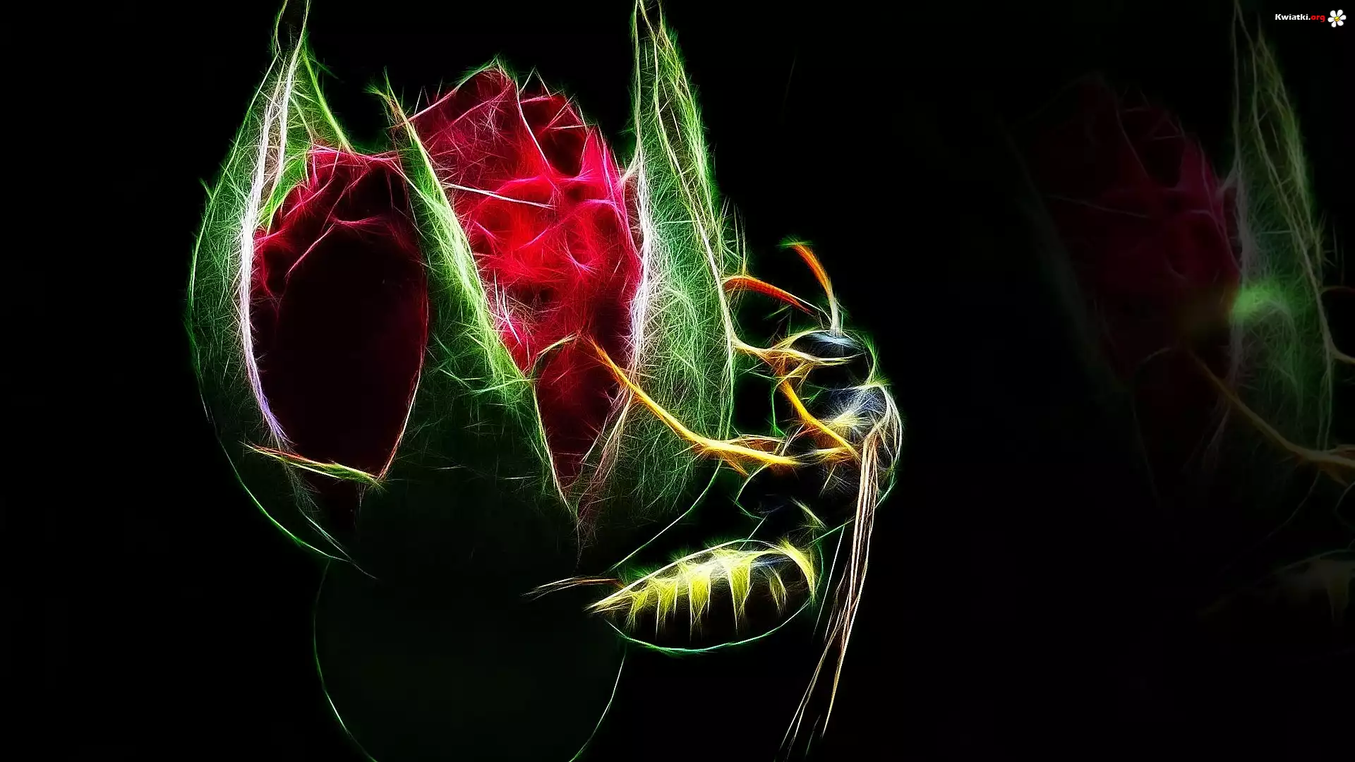 Kwiat, Czerwona, Róża, Pąk, Pszczoła, Czarne, Tło, Fractalius - Zdjęcia