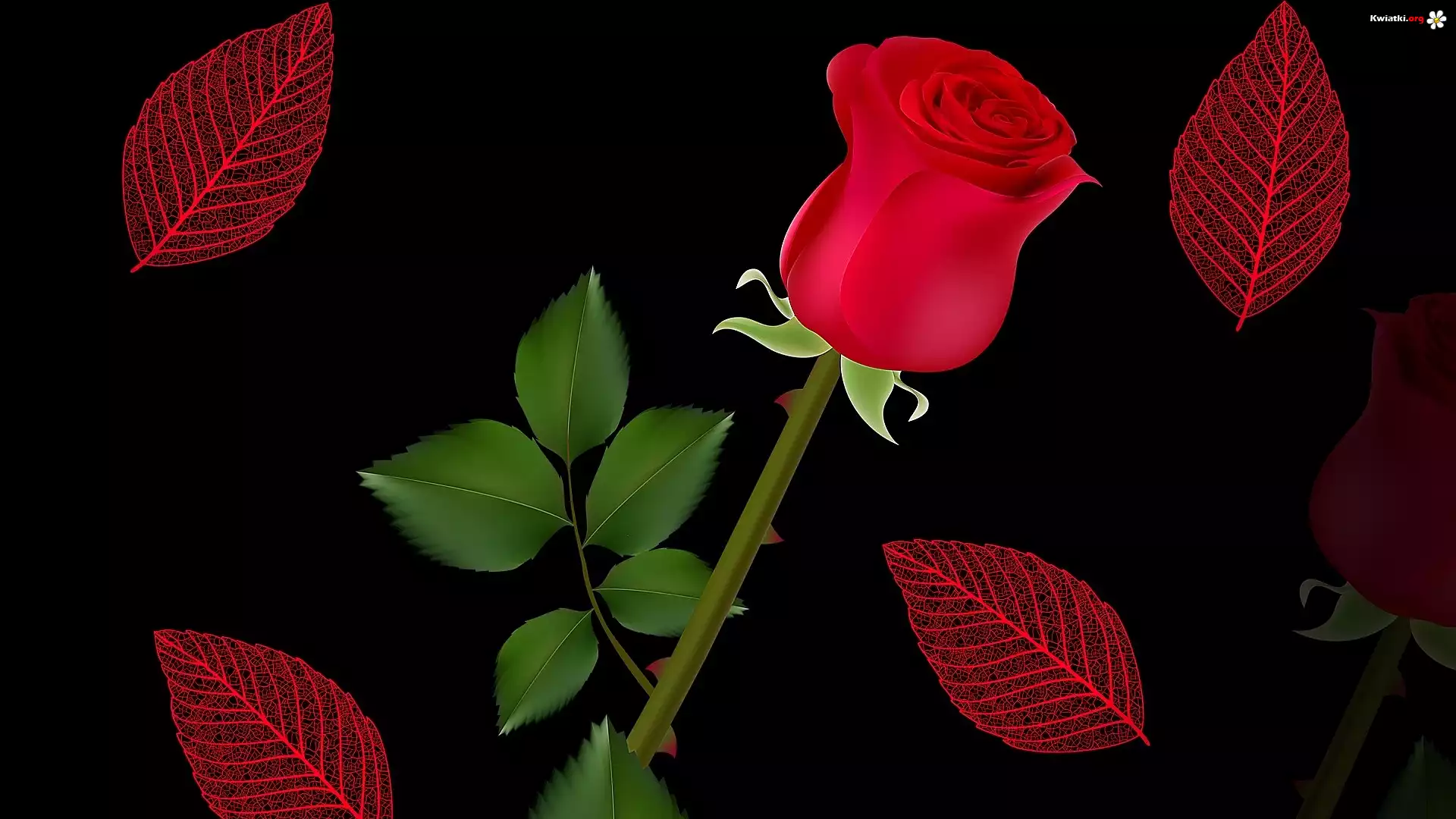Kwiat, Czerwona, Róża, Liście, Kolce, Czarne, Tło, Grafika - Zdjęcia