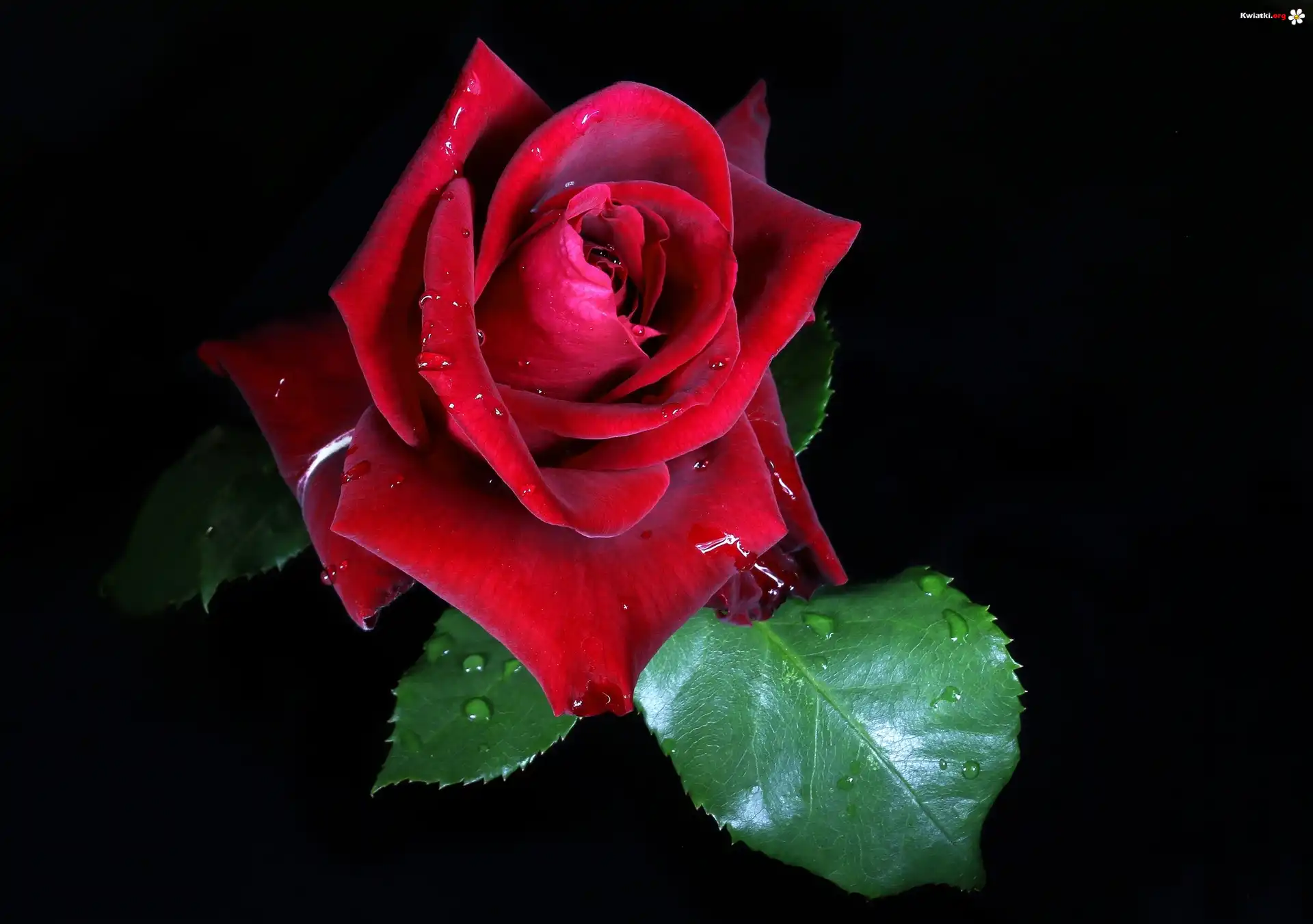 Kwiat Czerwona, Róża, Kropelki, Woda