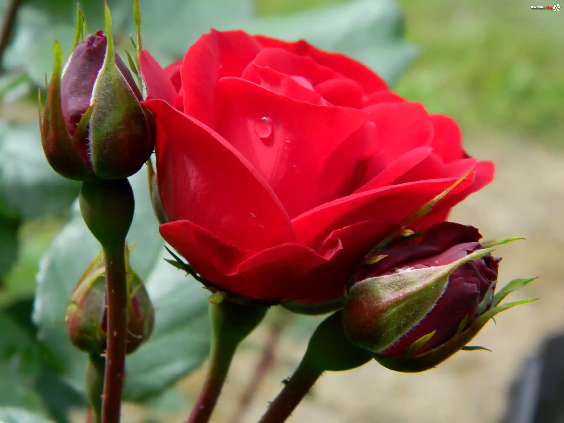 Czerwona, Róża, Pąki, Kropla, Wody - Zdjęcia