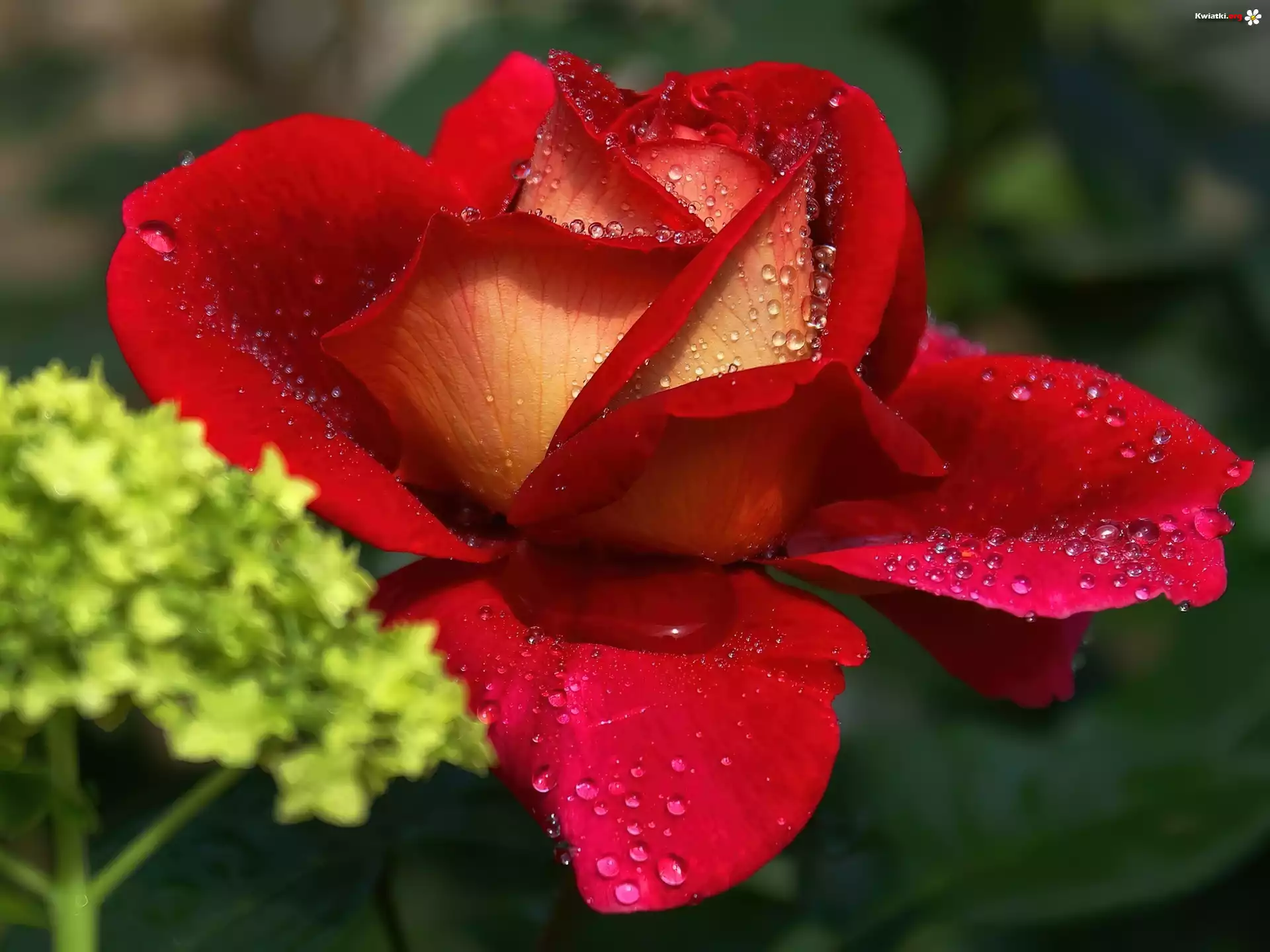 Kwiat Czerwona, Róża, Krople, Deszczu