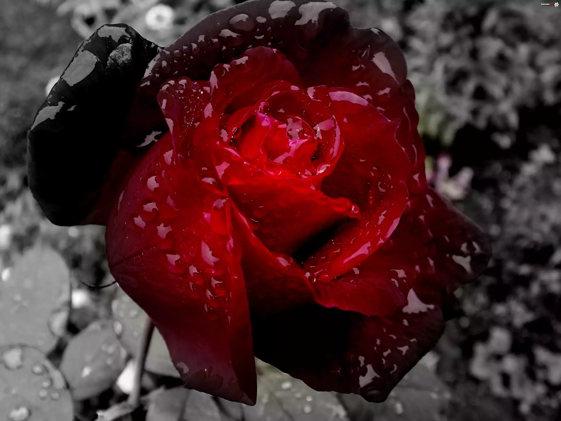 Czerwona, Róża, Krople, Wody - Zdjęcia
